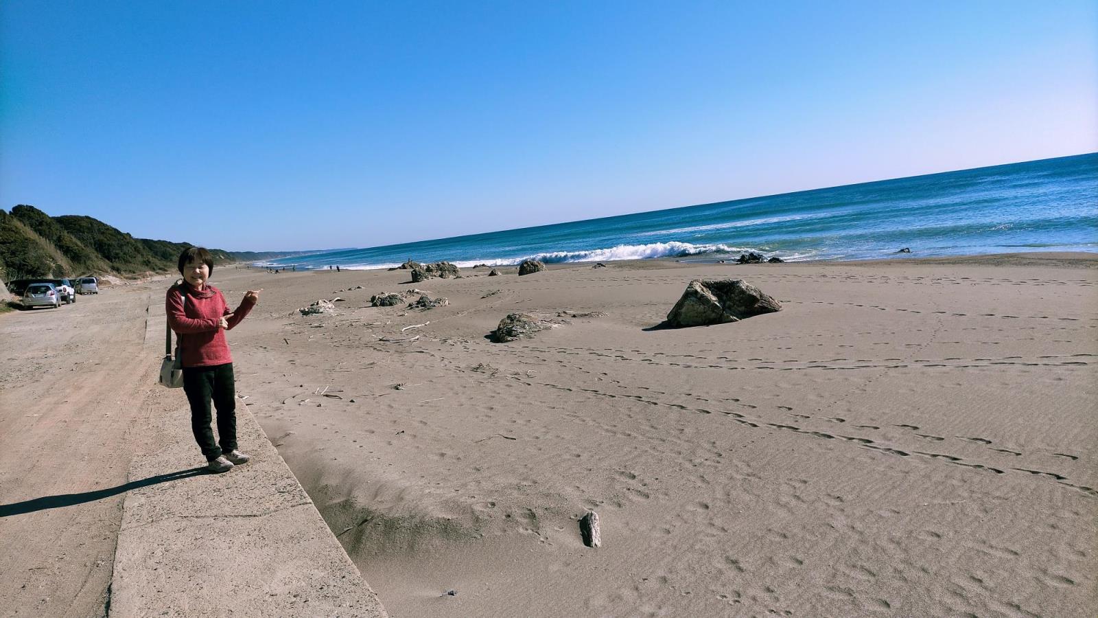 浜松へ続く長い海岸線がとても素晴らしい 松葉杖では砂浜へ降りれないのが残念