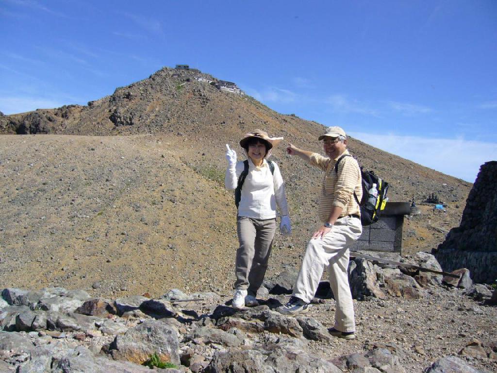 | 富士登山(7/24予定)の足慣しのために、御嶽登山に挑戦しました 田の原駐車場から王滝山まで3時間(何回かの休憩含んで)、剣ケ峰まではさらに30分の登山です 空気が薄いのか、苦しくフラフラになっての登山となり、富士登頂がとても心配になりましたが、 剣ケ峰からの360度の大展望に大感動出来ましたので、富士登山も頑張れそうです |