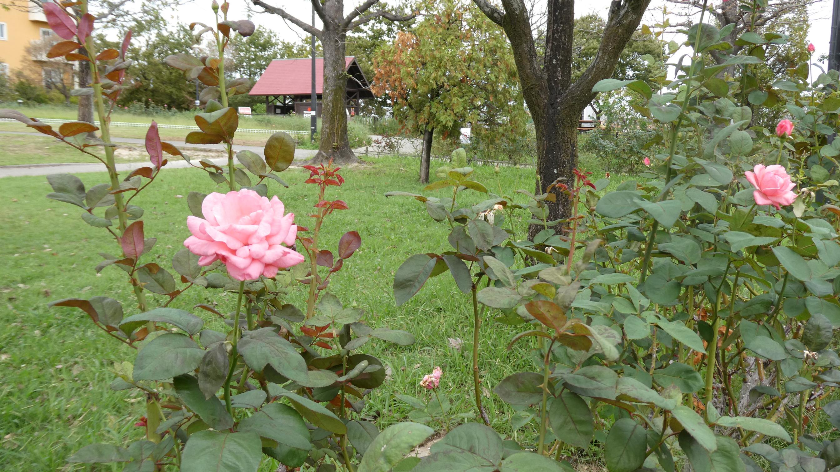 公園の外周遊歩道沿いにバラの木があるが、花は殆ど咲いていない