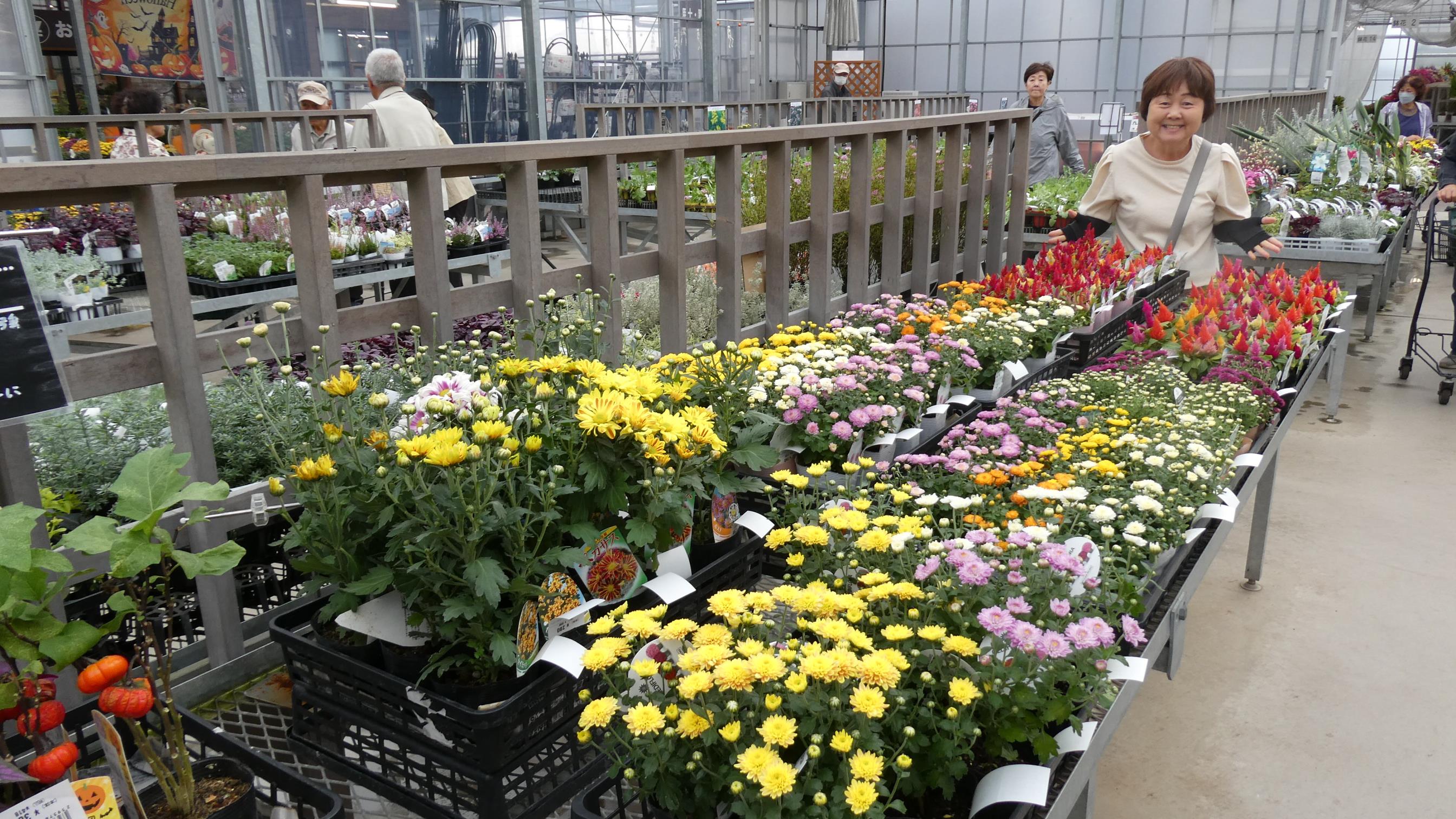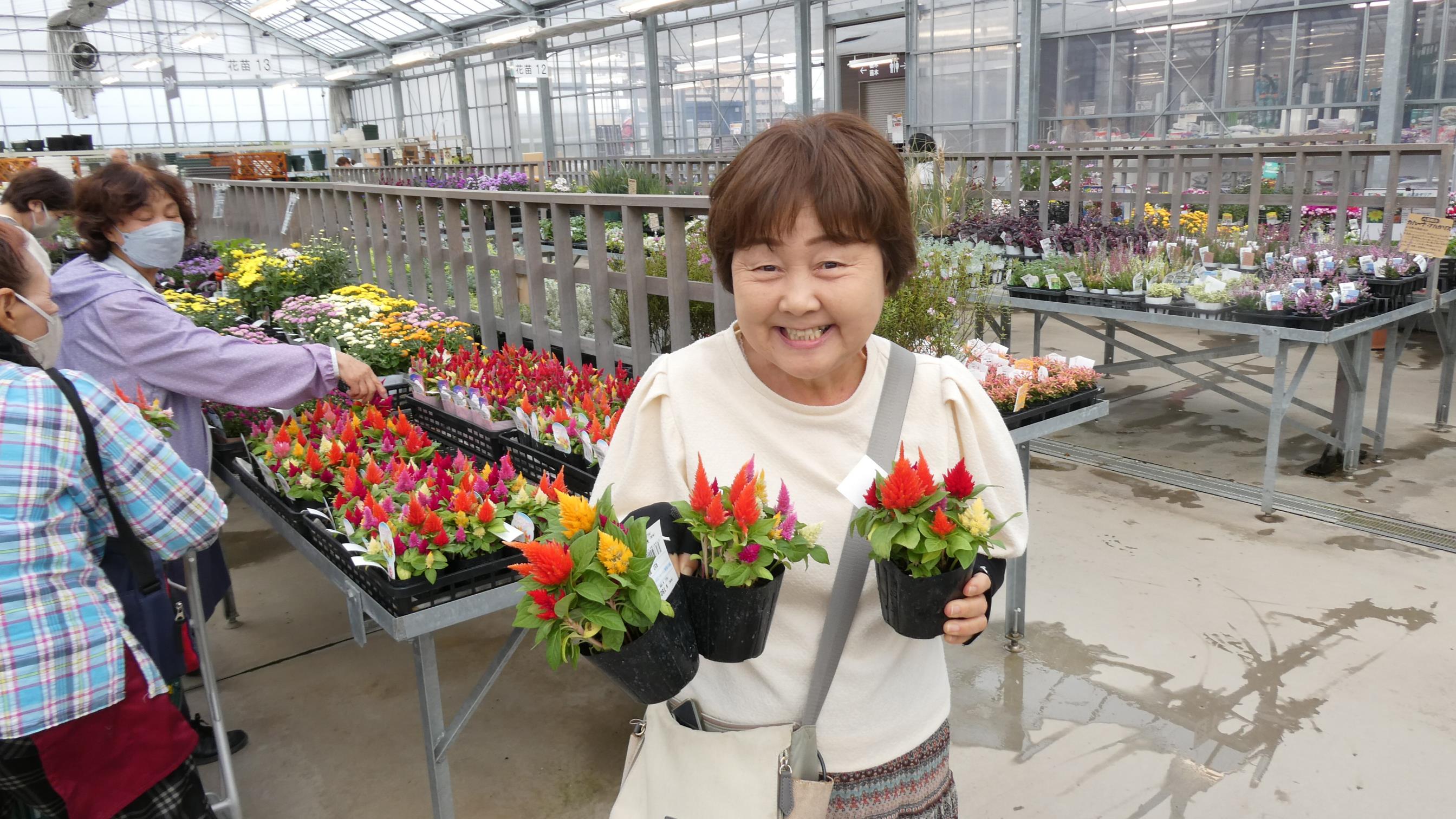 広大なスペ−スに花の苗がいっぱい 花好きな人にも持って来いの店と思える お客さんも大勢いた