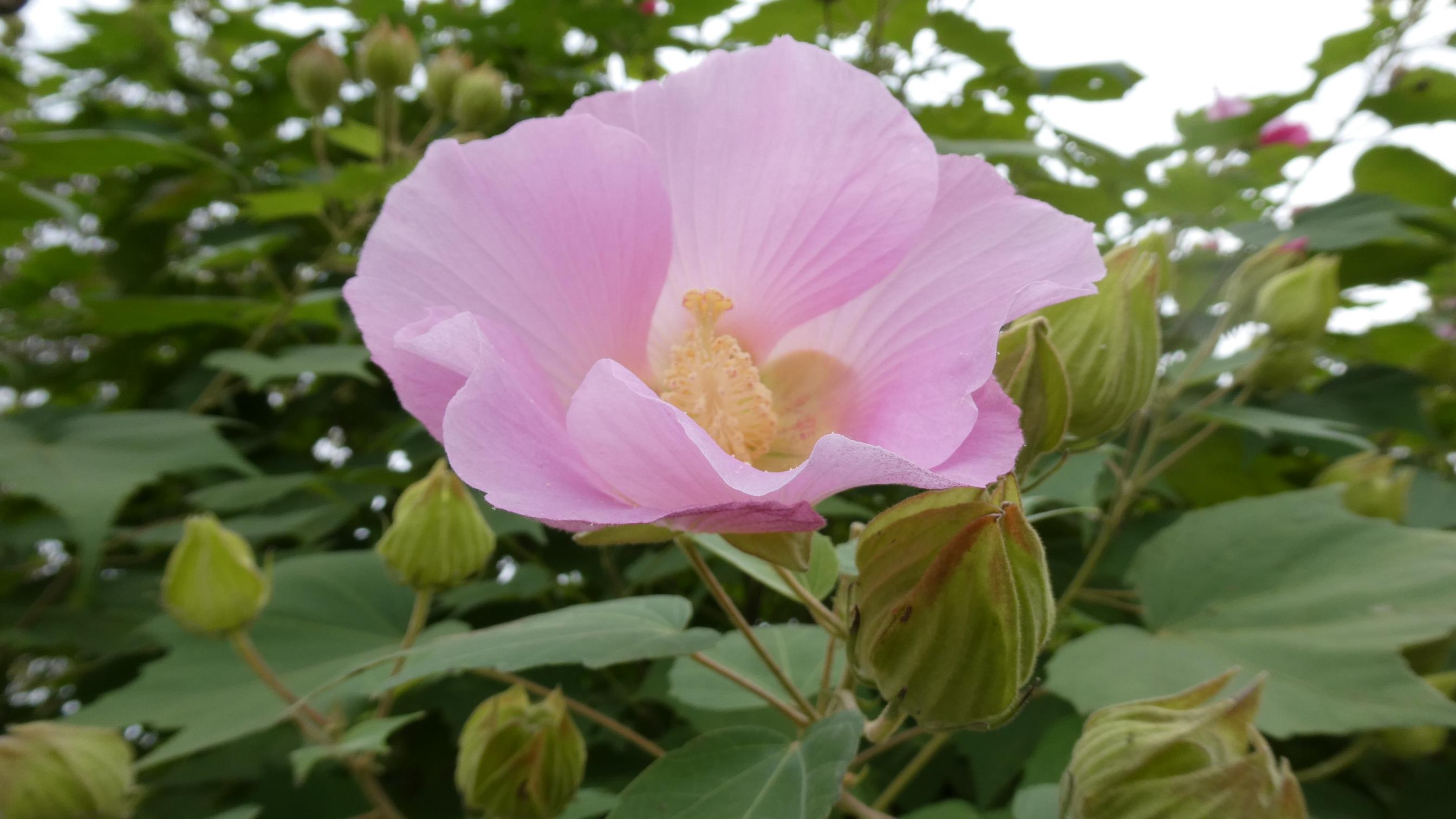 この花は、フヨウと女房が言う まだ蕾が多いので、これから咲き誇ると思われる