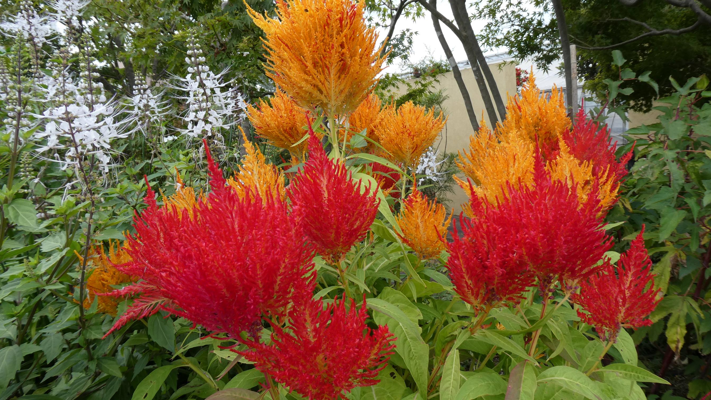 四季の花園に咲いているケイトウ 大きくて鮮やかな色が最高