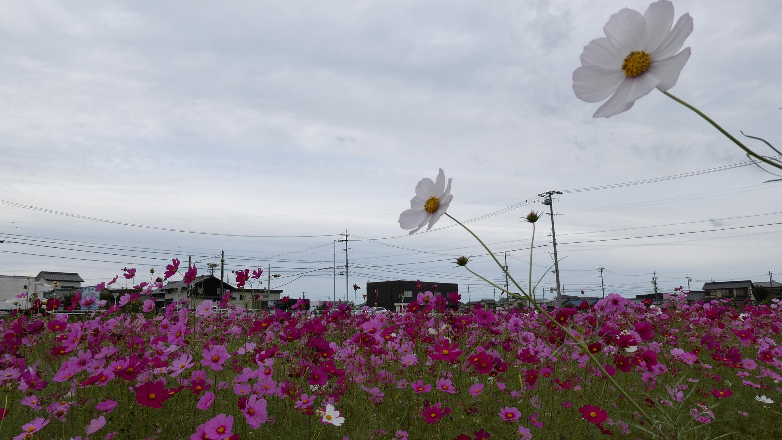秋の青空と撮りたかったが、今日は生憎の曇り空