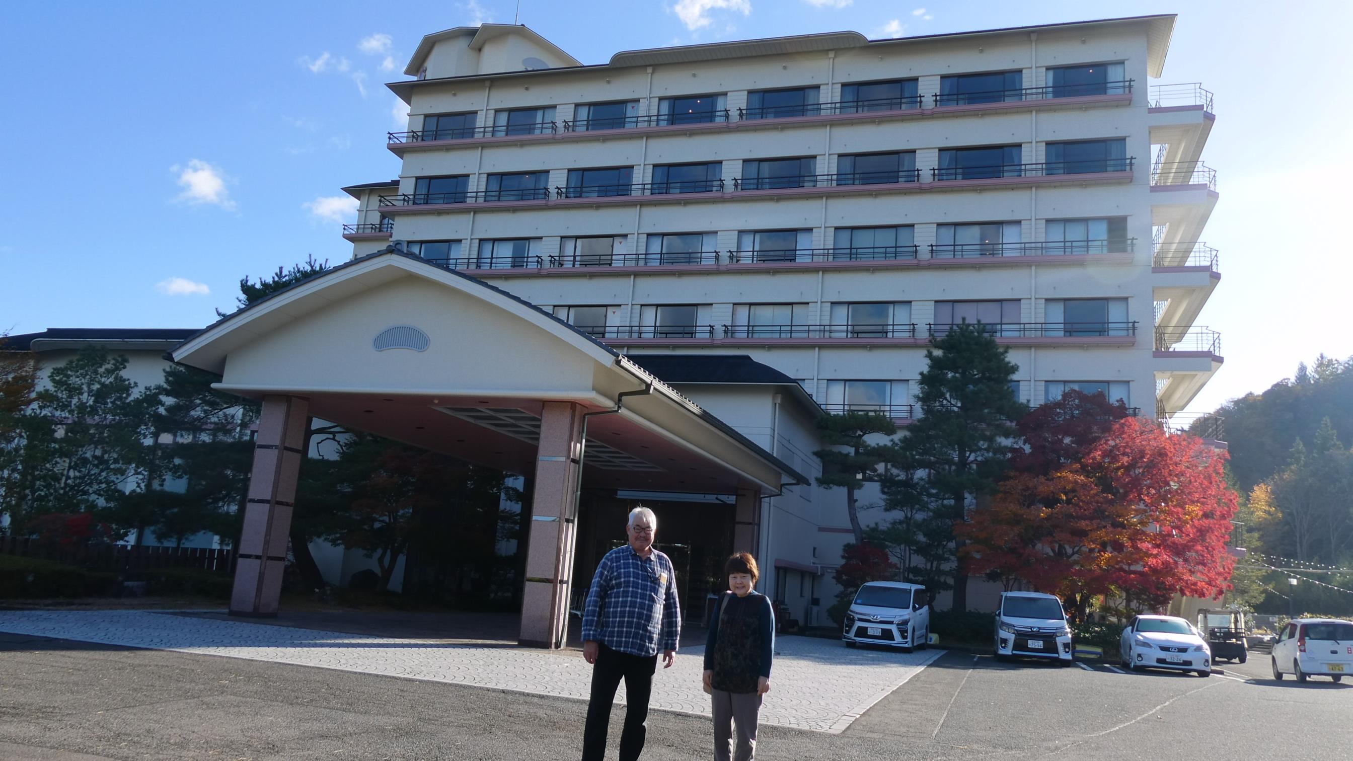 チェックインの時は暗くて気付かなかったが、立派な建屋のホテルだった 一本紅葉のモミジがあるのが良い