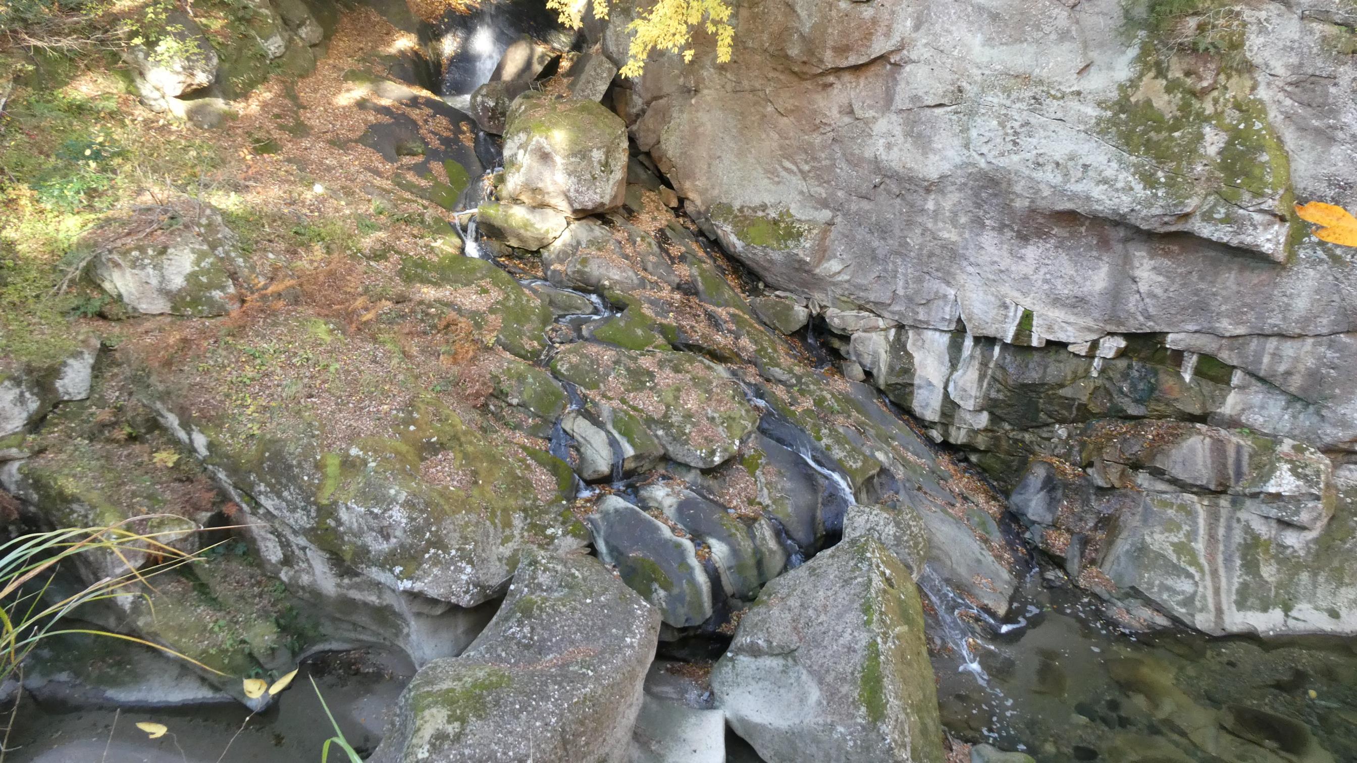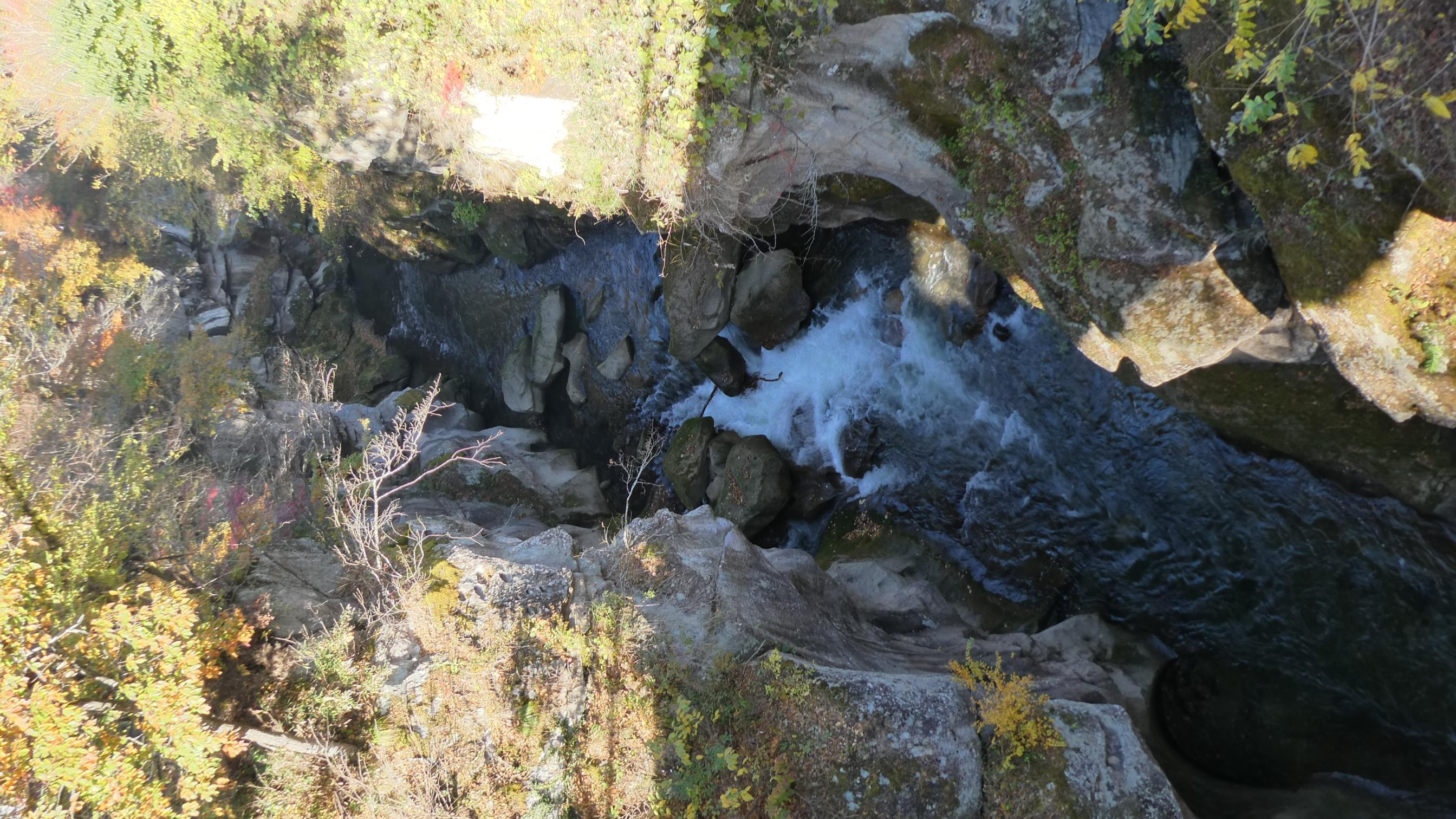 断崖絶壁の渓谷は楽しめるが、紅葉は楽しめず