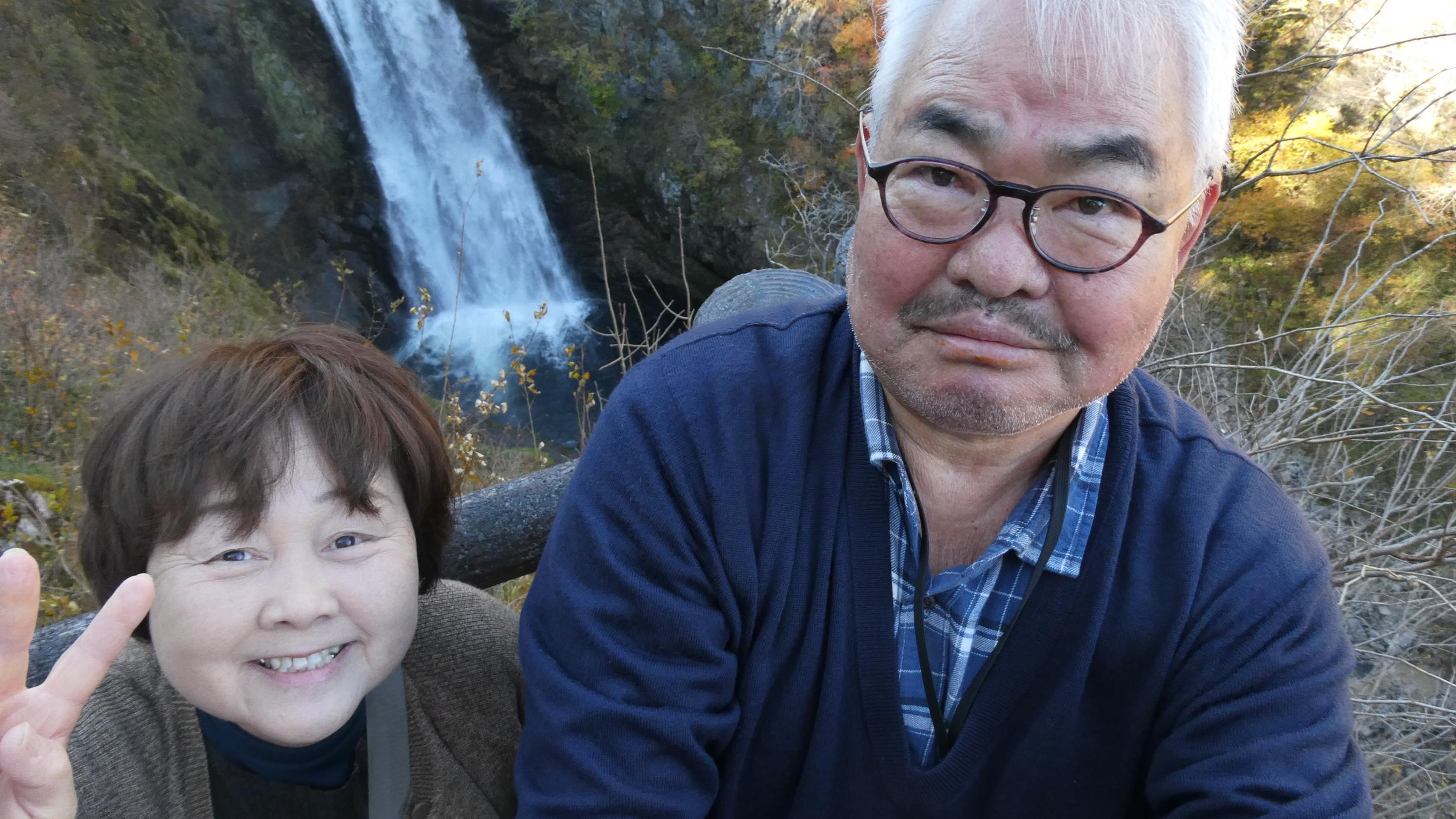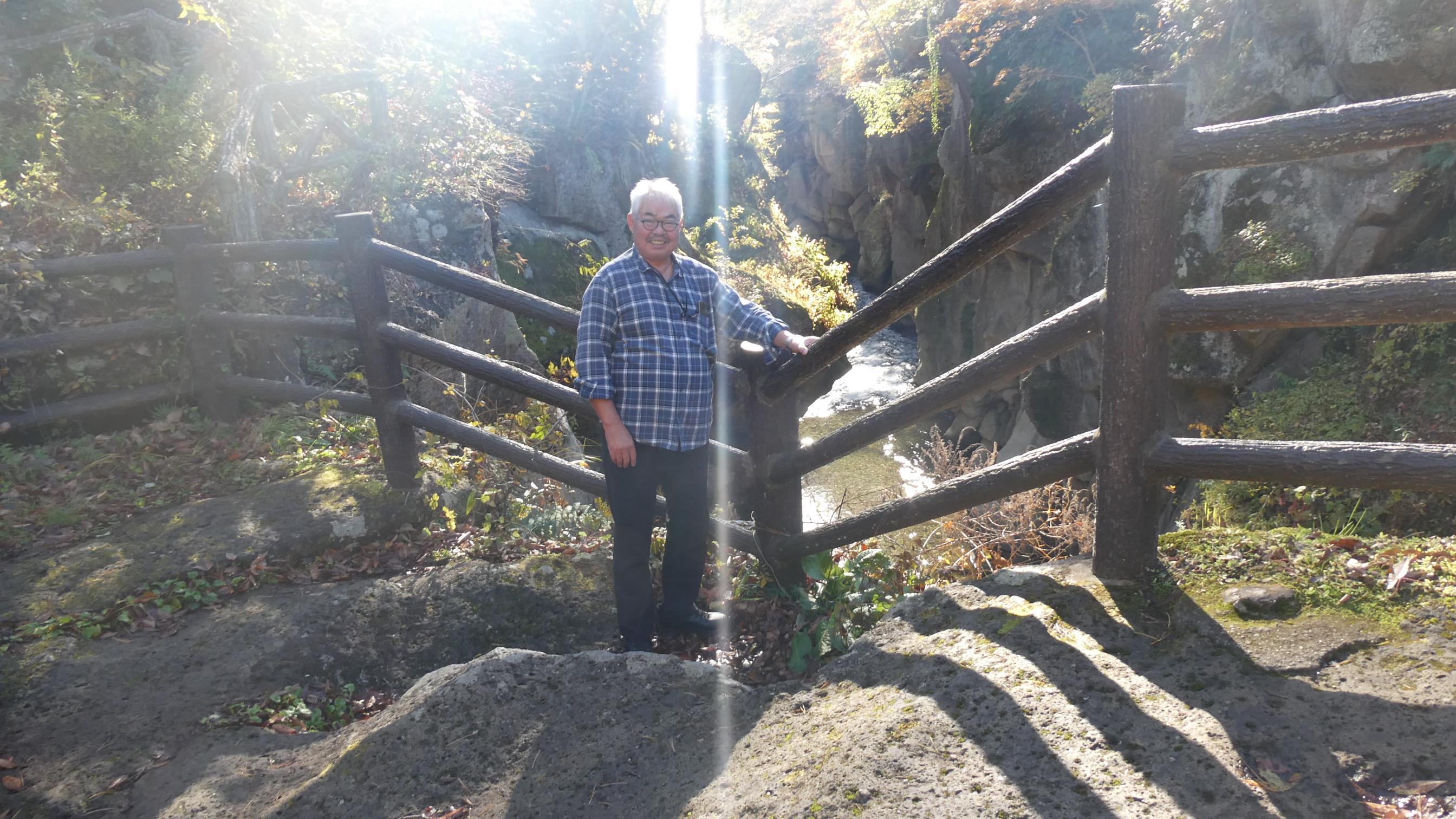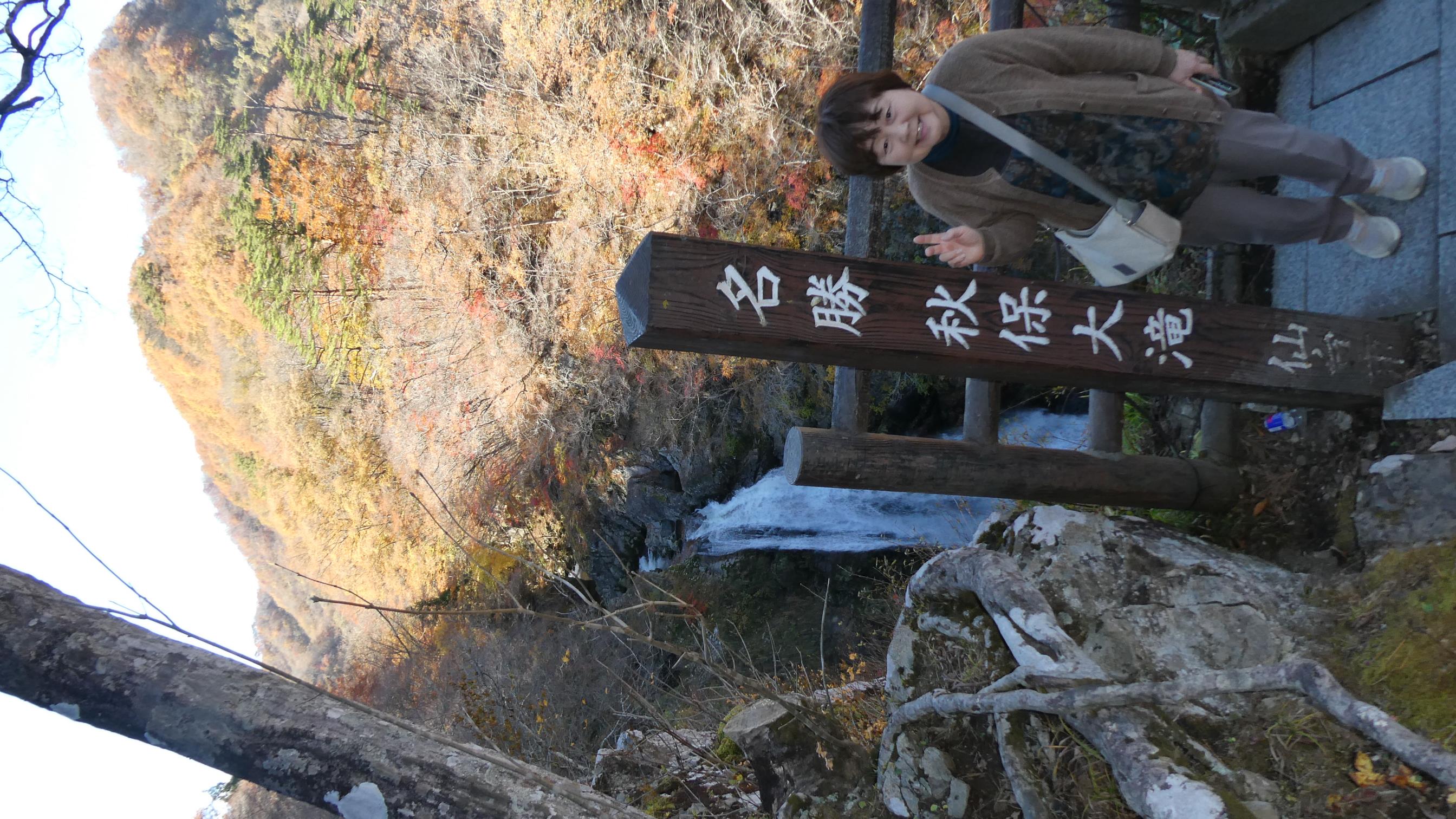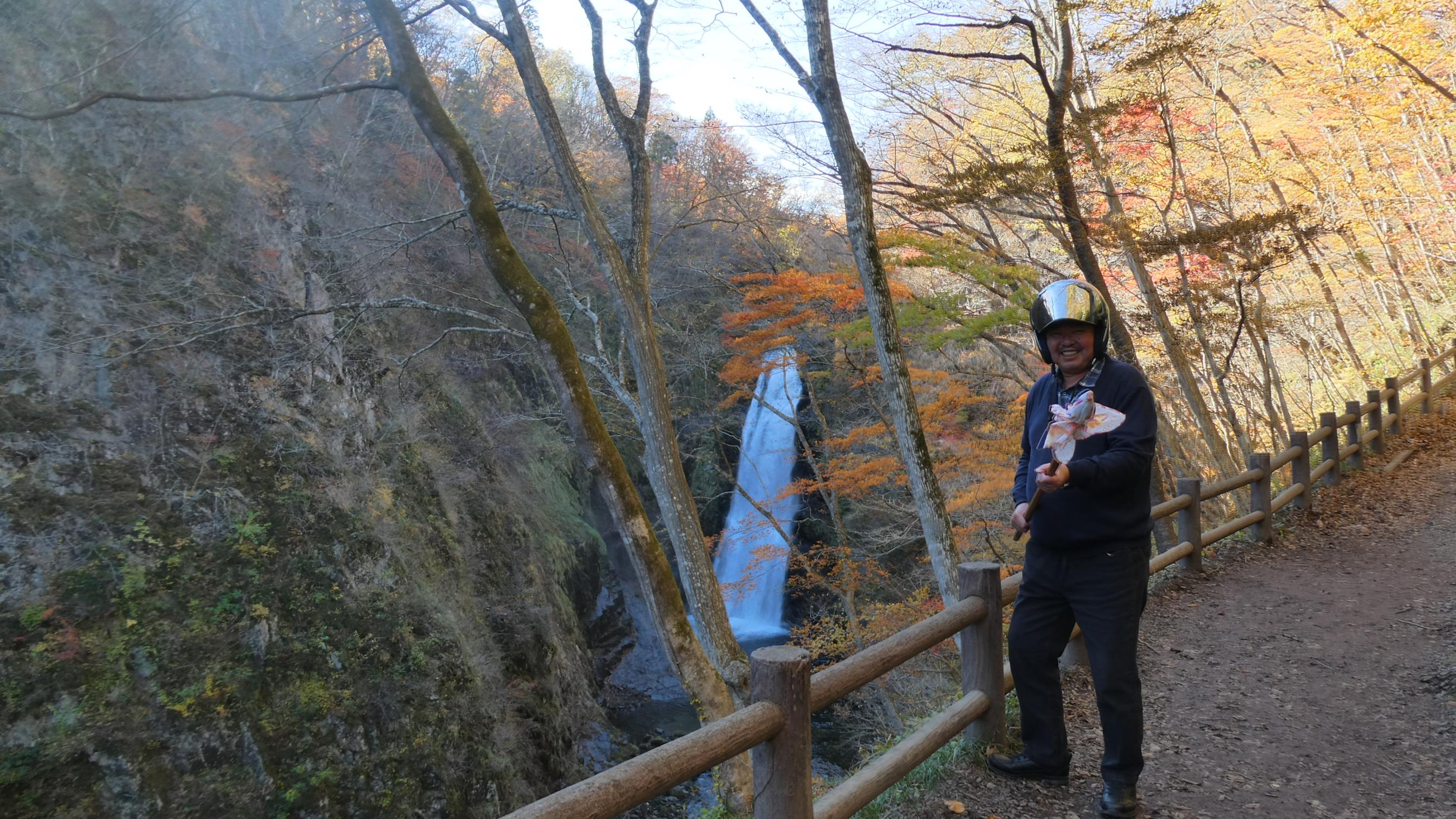 狭い滝見台に何人かの中国人がいたが、スキを見て標識と写真撮り