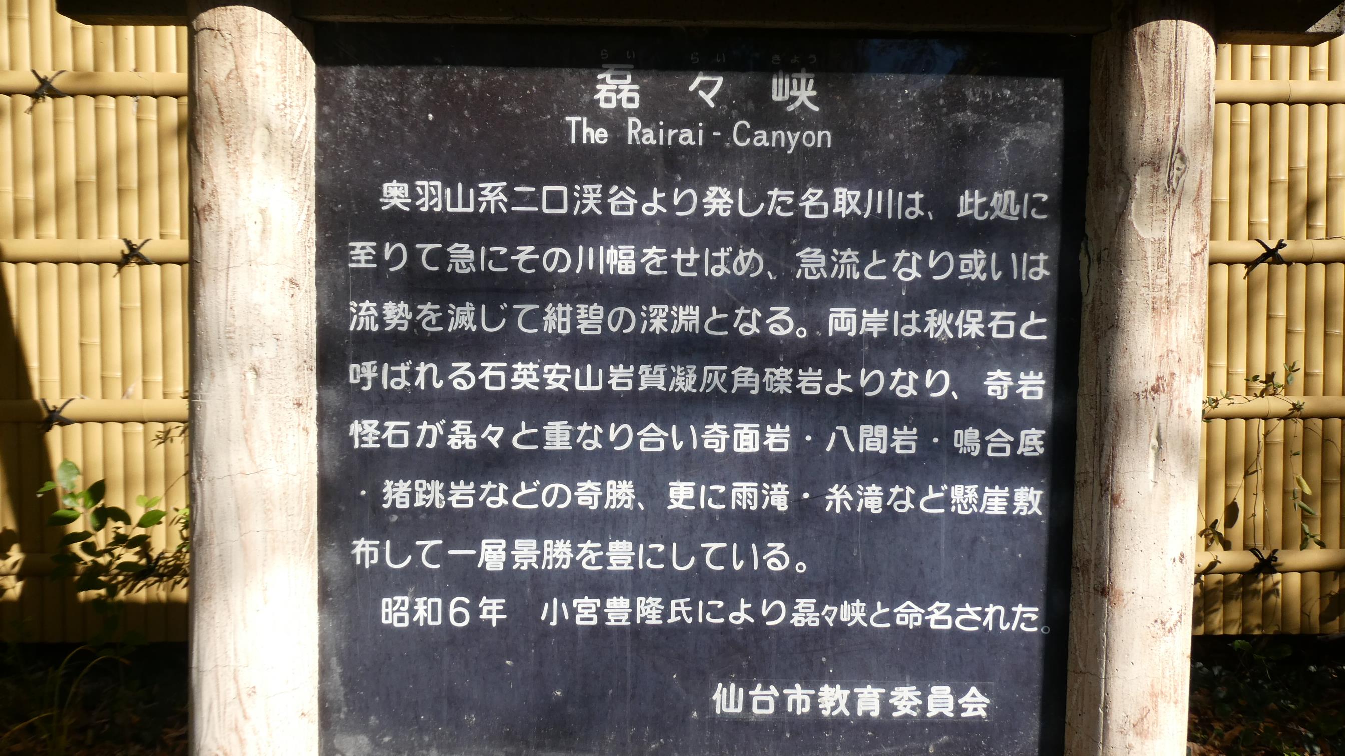 磊々(らいらい)峡 宿泊したホテルの近くにある秋保・里センターに駐車