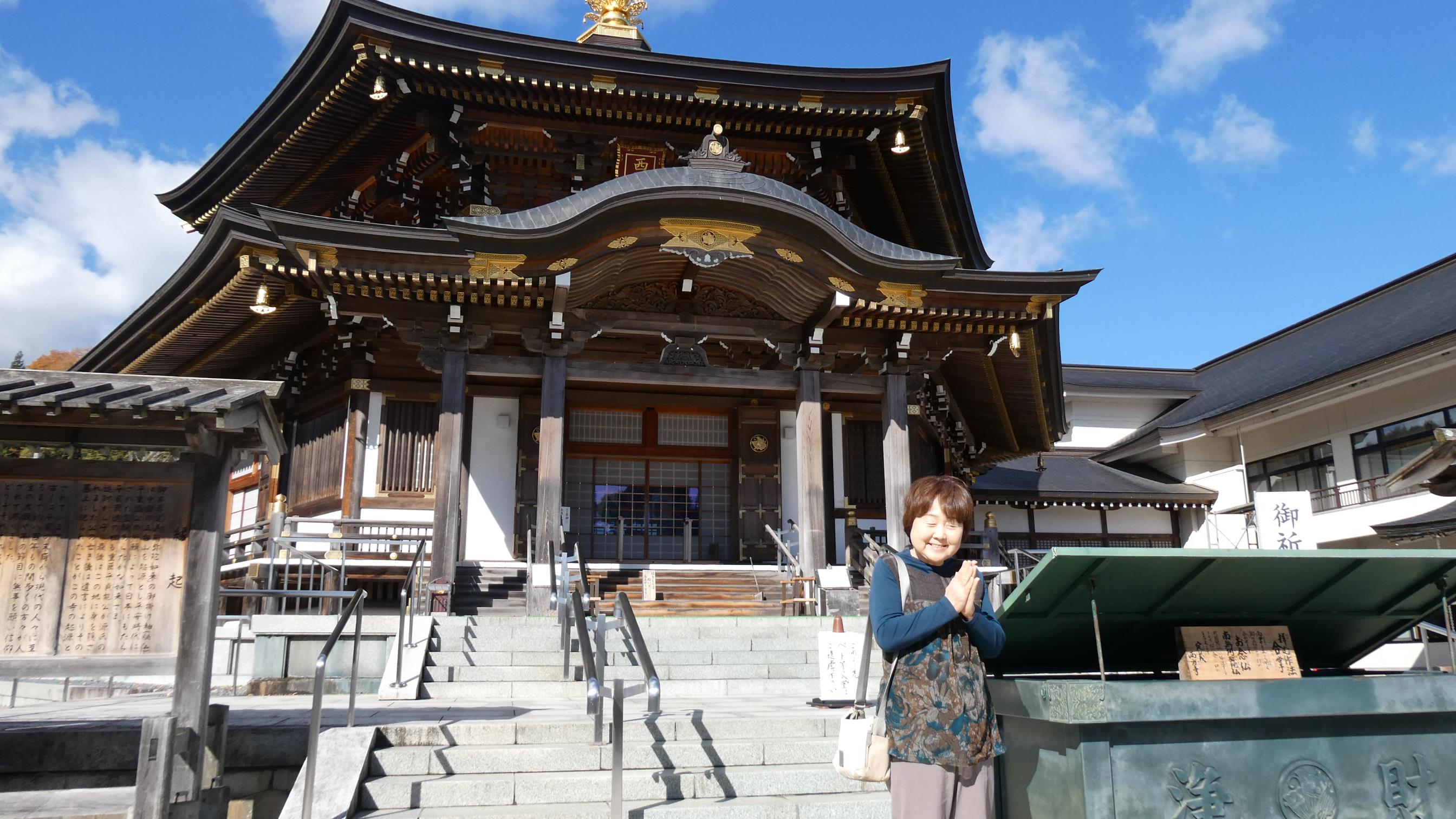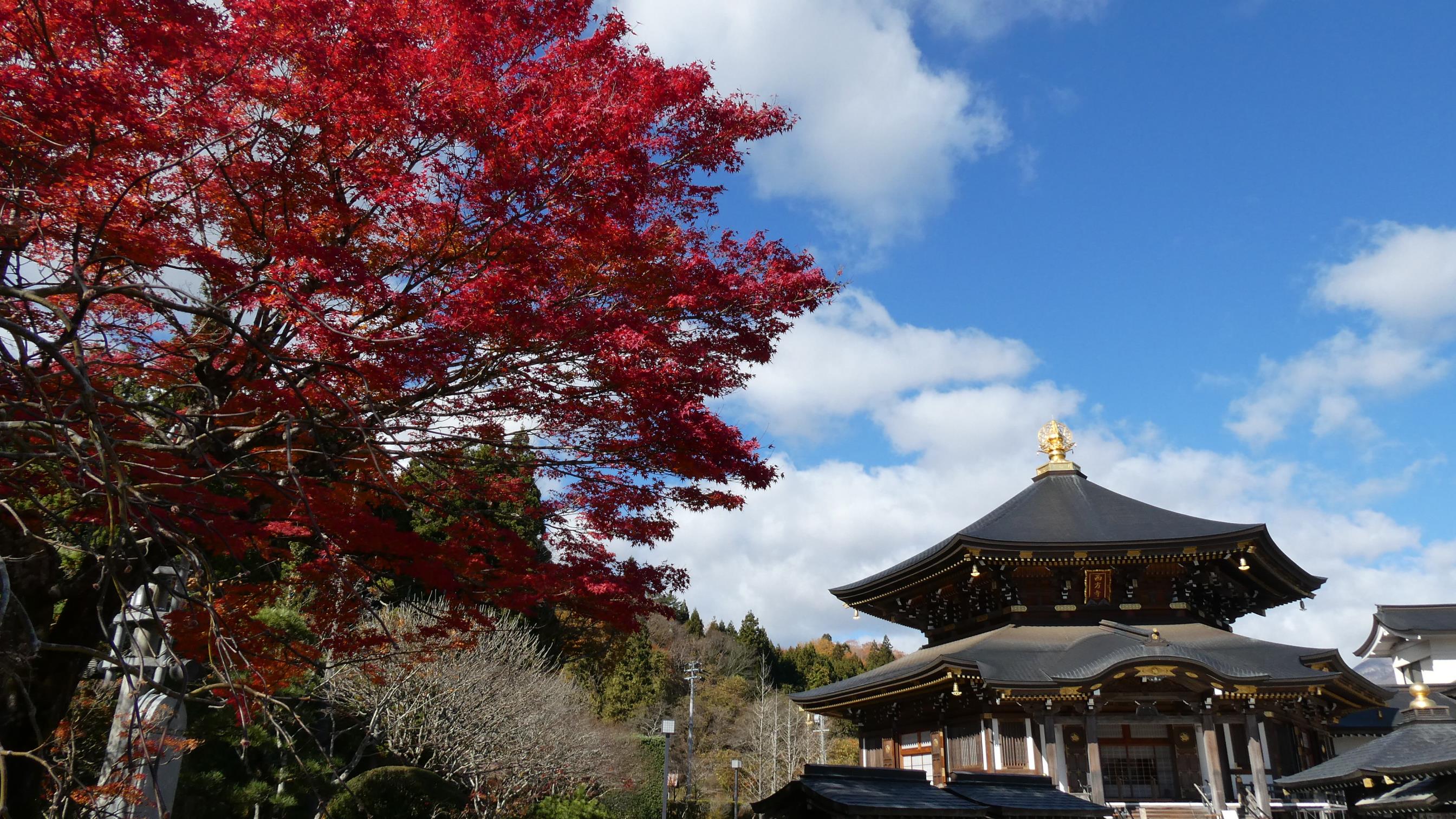 六角のお堂が本尊 青空と紅葉と本尊が良い感じで撮れた