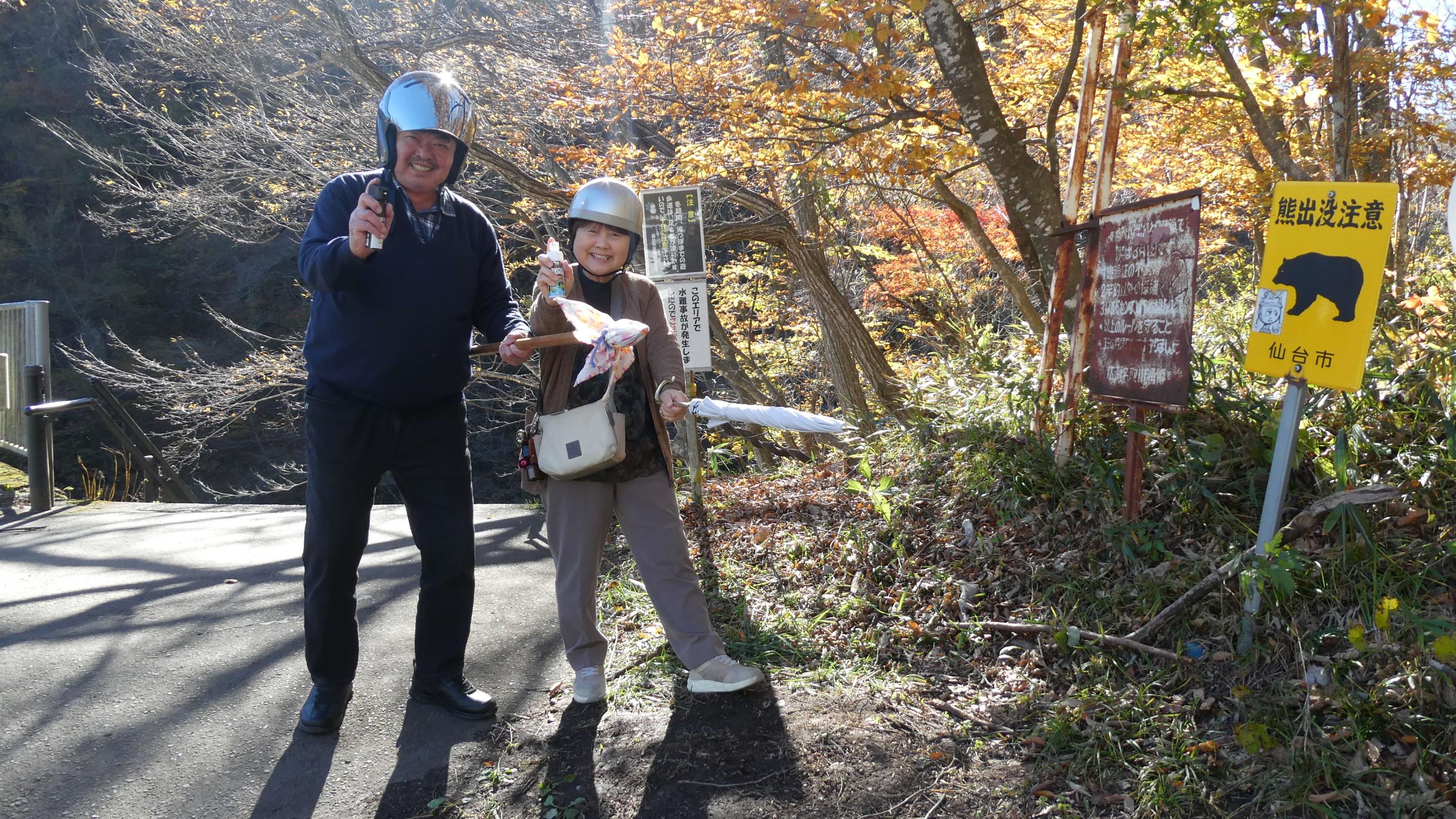 当然ここは熊がいる 当初は長老湖まで歩こうと思ったが、熊被害のニュースを毎日やっており、山の中を歩く気は無くなった