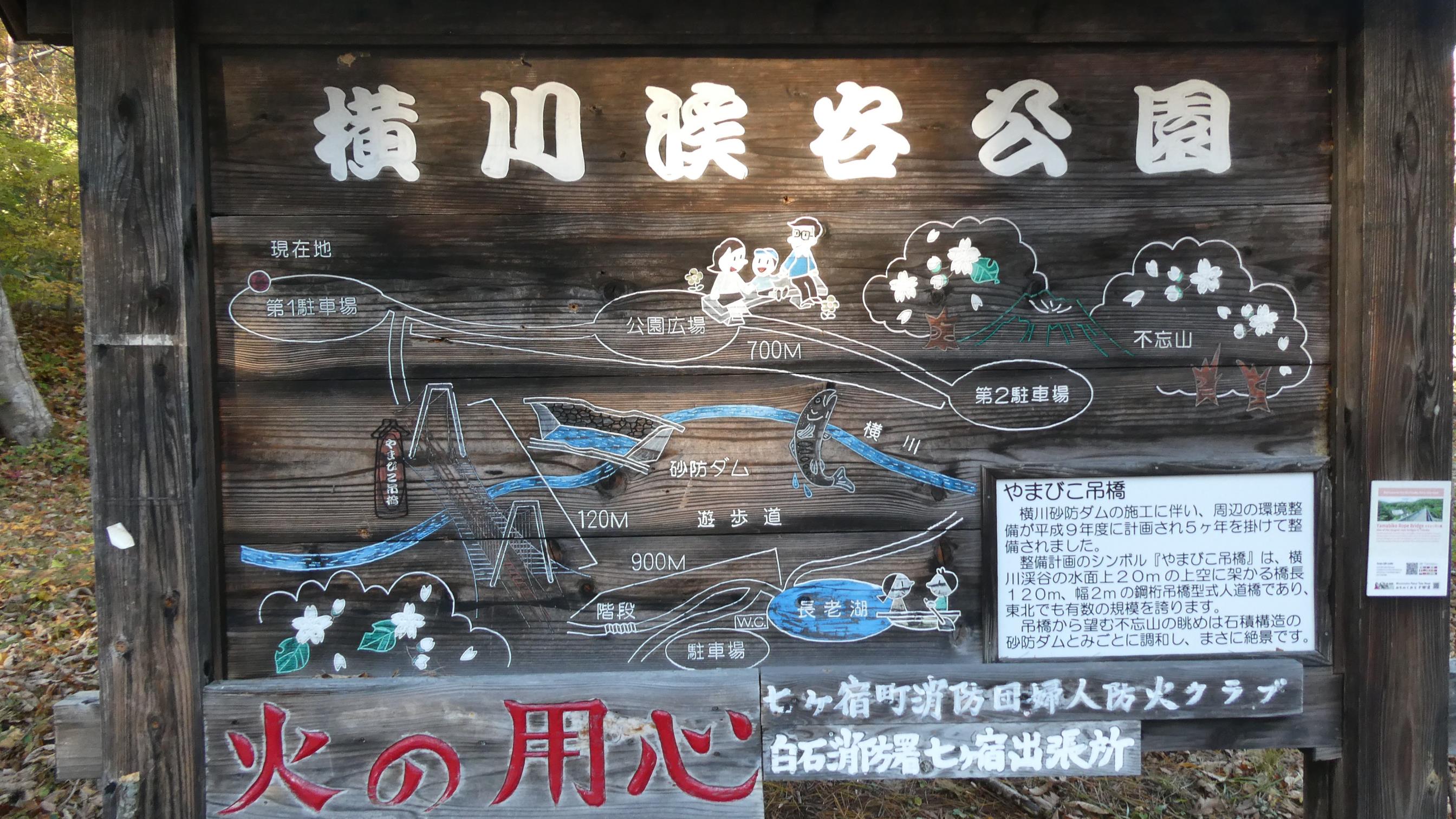 やまびこ吊橋 やまびこ吊橋から長老湖が、横川渓谷公園になっている