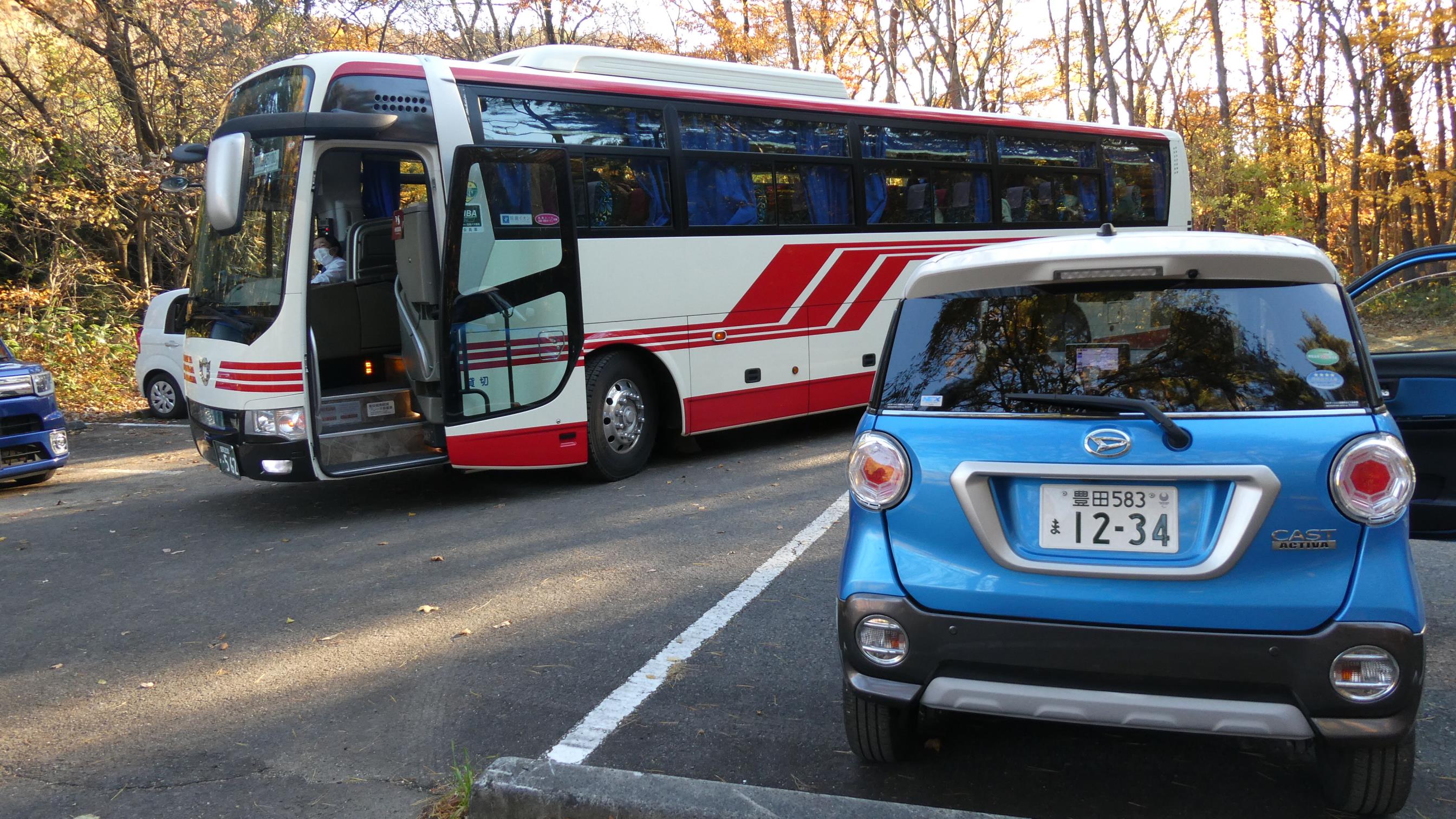 狭い駐車場に観光バスが入って来たのにビックリ 中国人の観光ツアーだった
