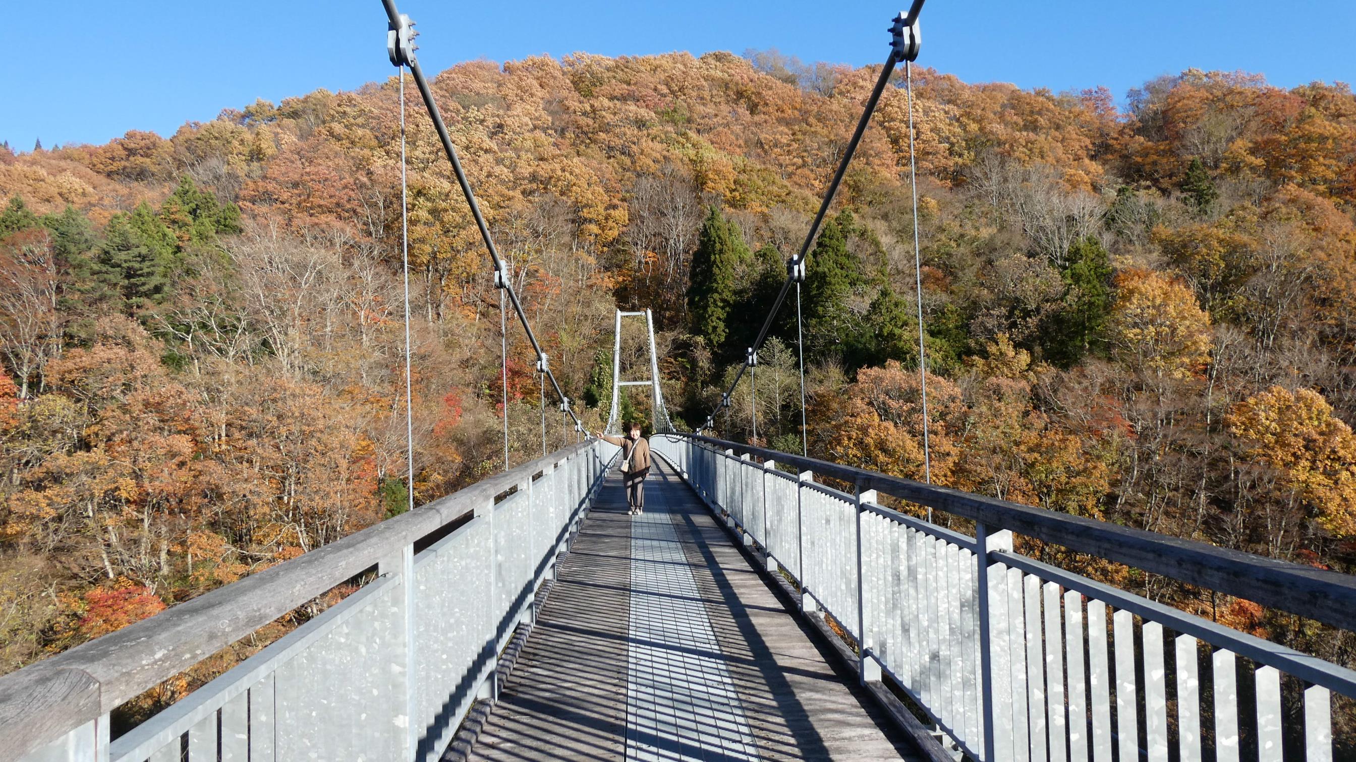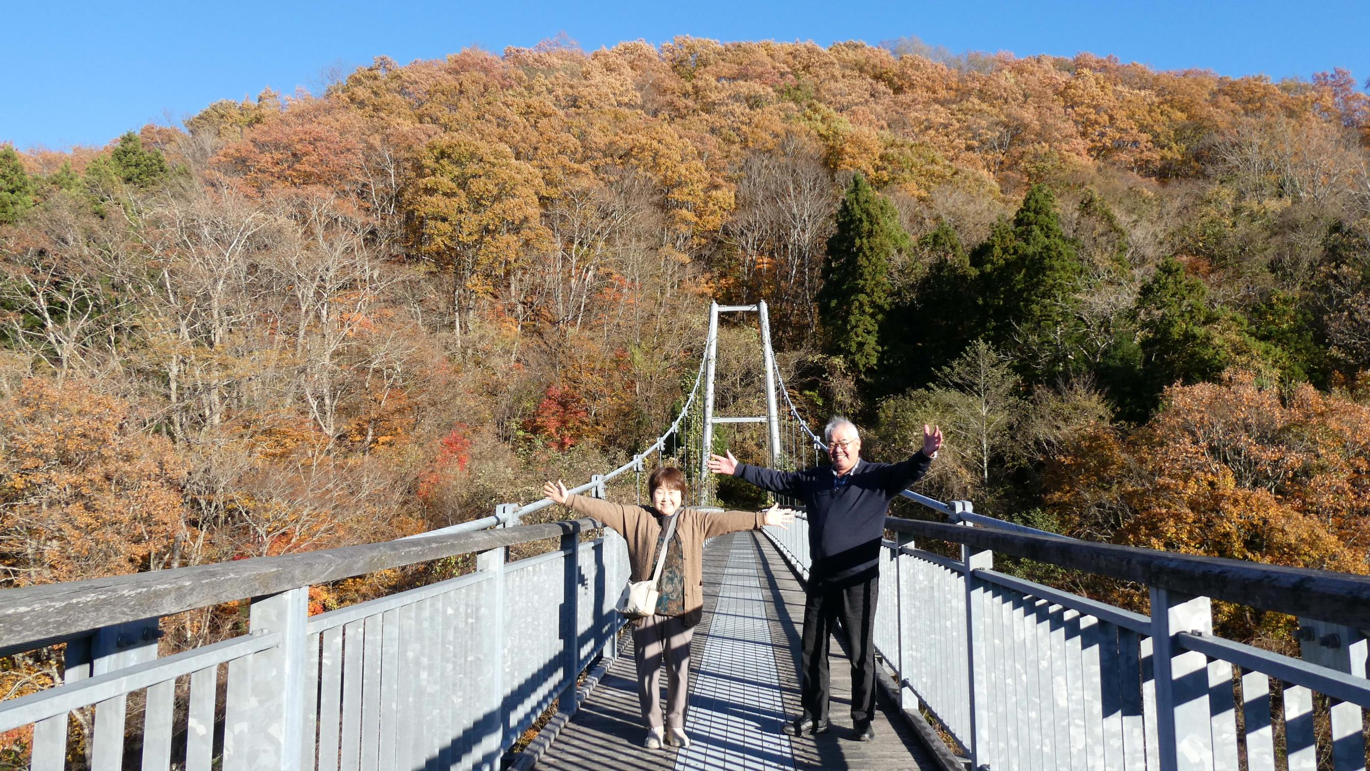 吊り橋から、紅葉と蔵王の雄大な景色が見れて、気分は最高