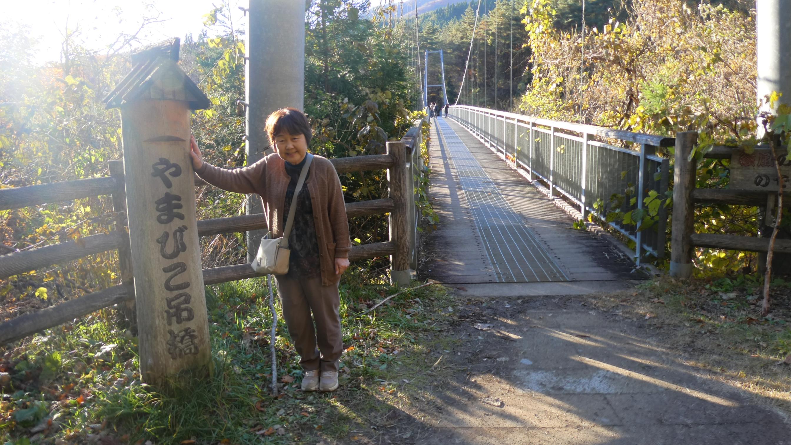 中国人ツアーが立ち去るのを待って、やまびこ吊橋を見る 中国人ツア−は、長老湖まで歩いて行った