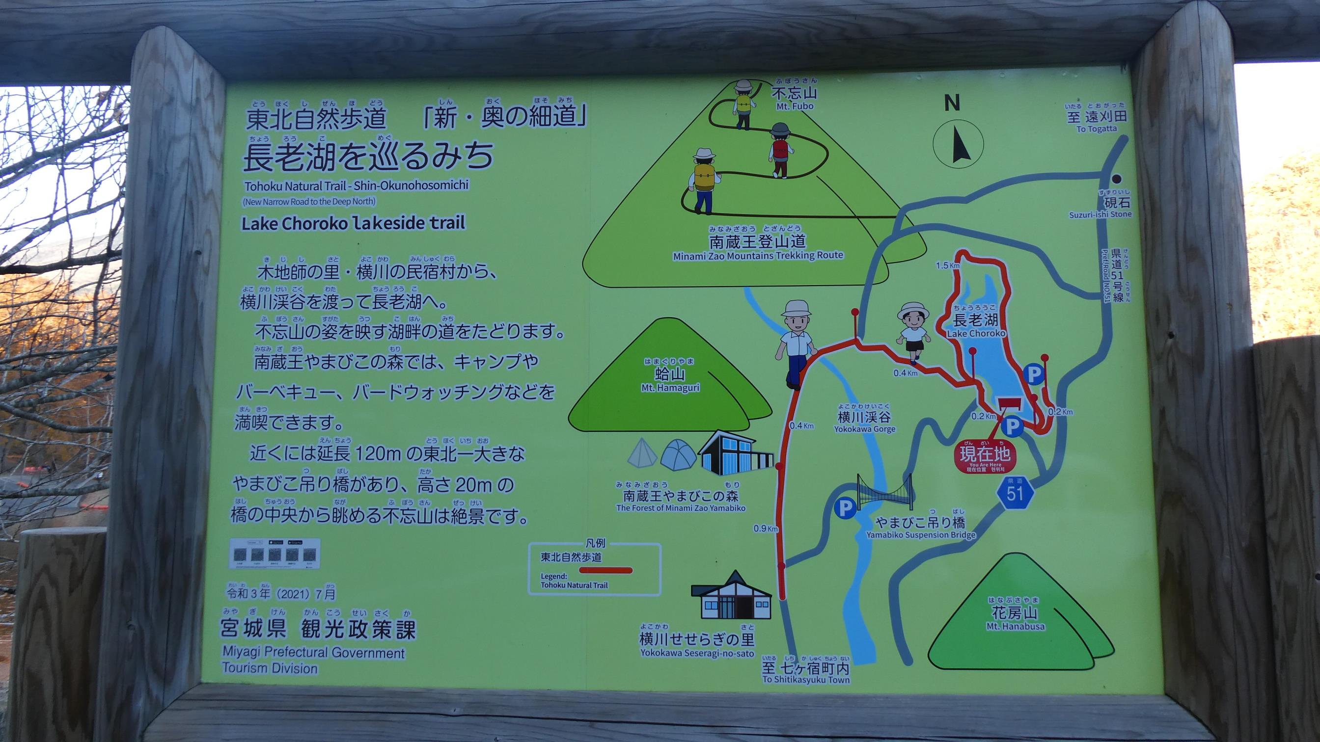 横からのやまびこ吊橋を撮って、車で長老湖へ行く