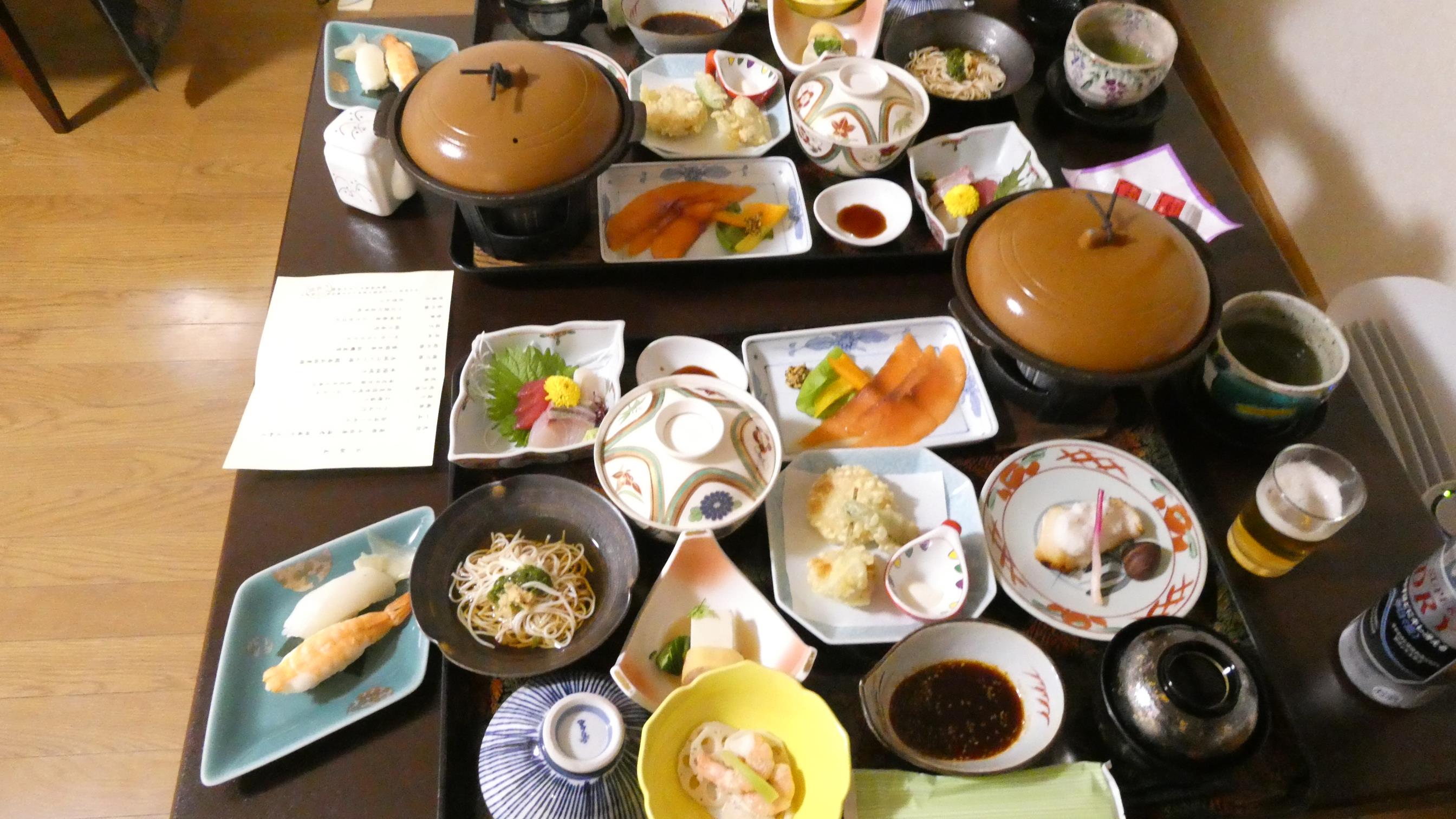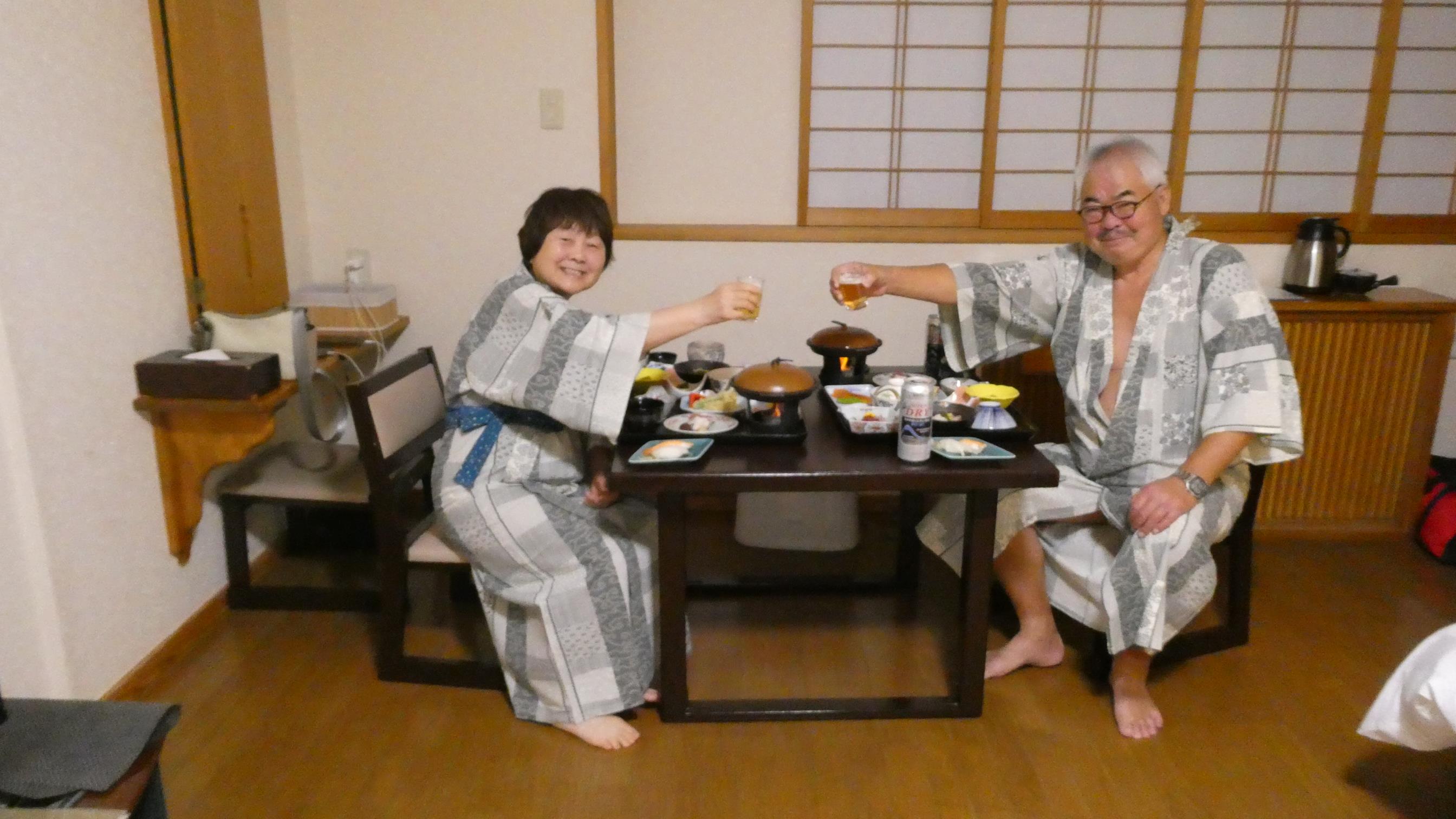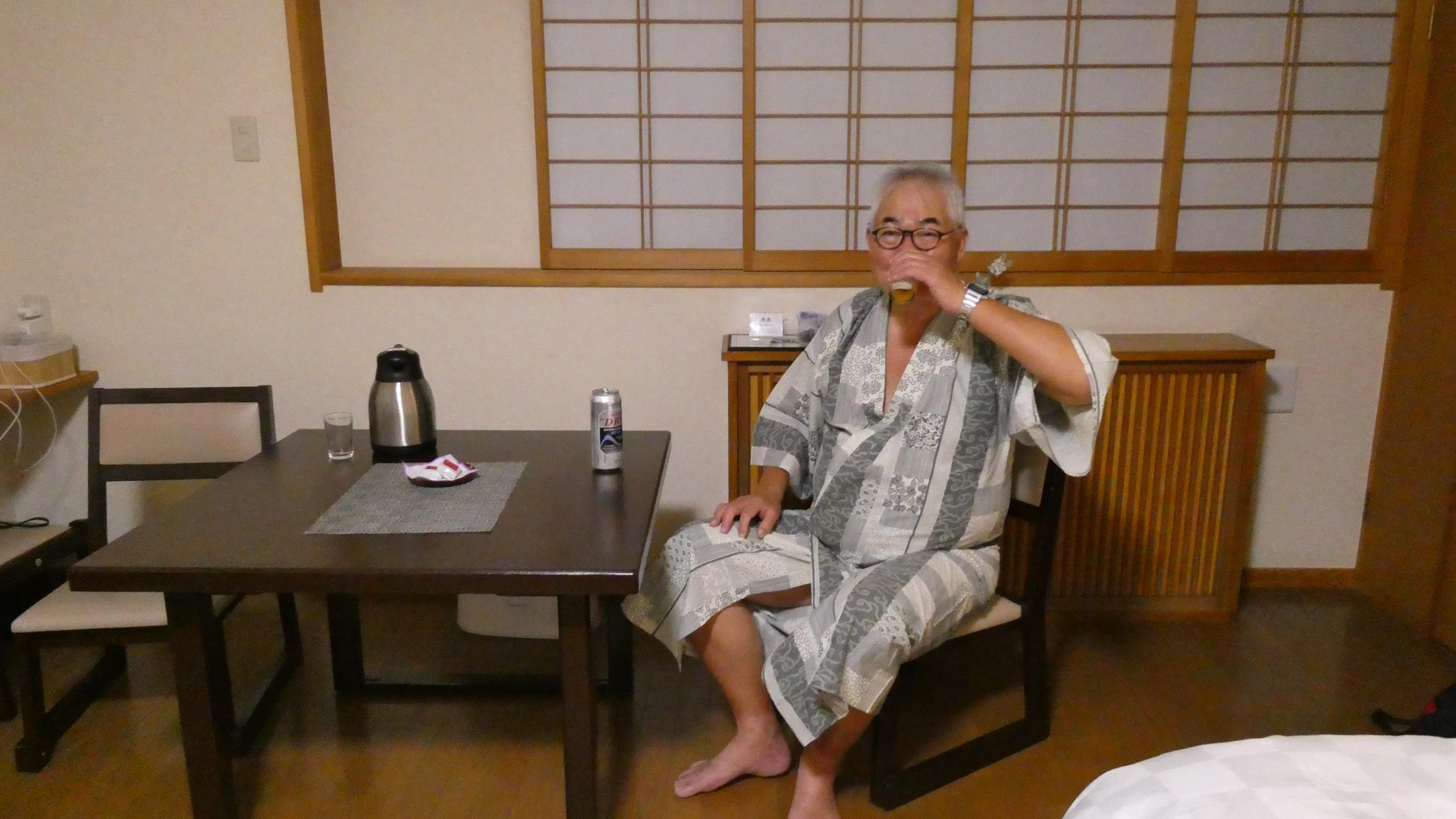 部屋の食事なので、缶ビ−ルが飲め安上りで済む