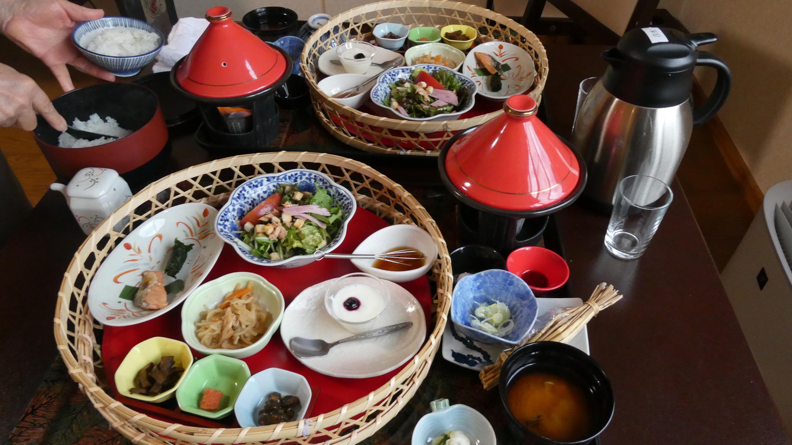 小鉢に漬物類が多い 豪華じゃないが小綺麗な朝食