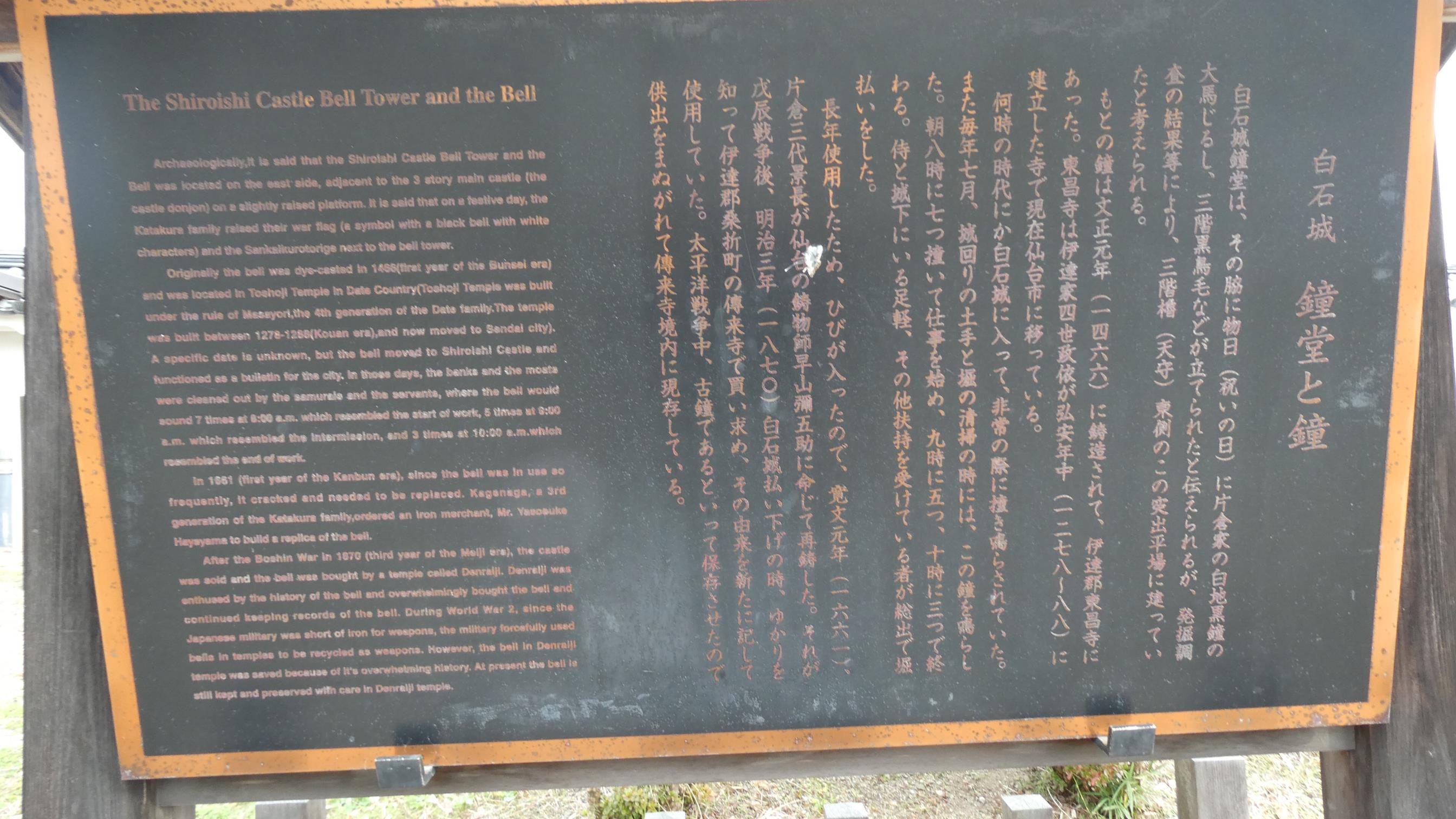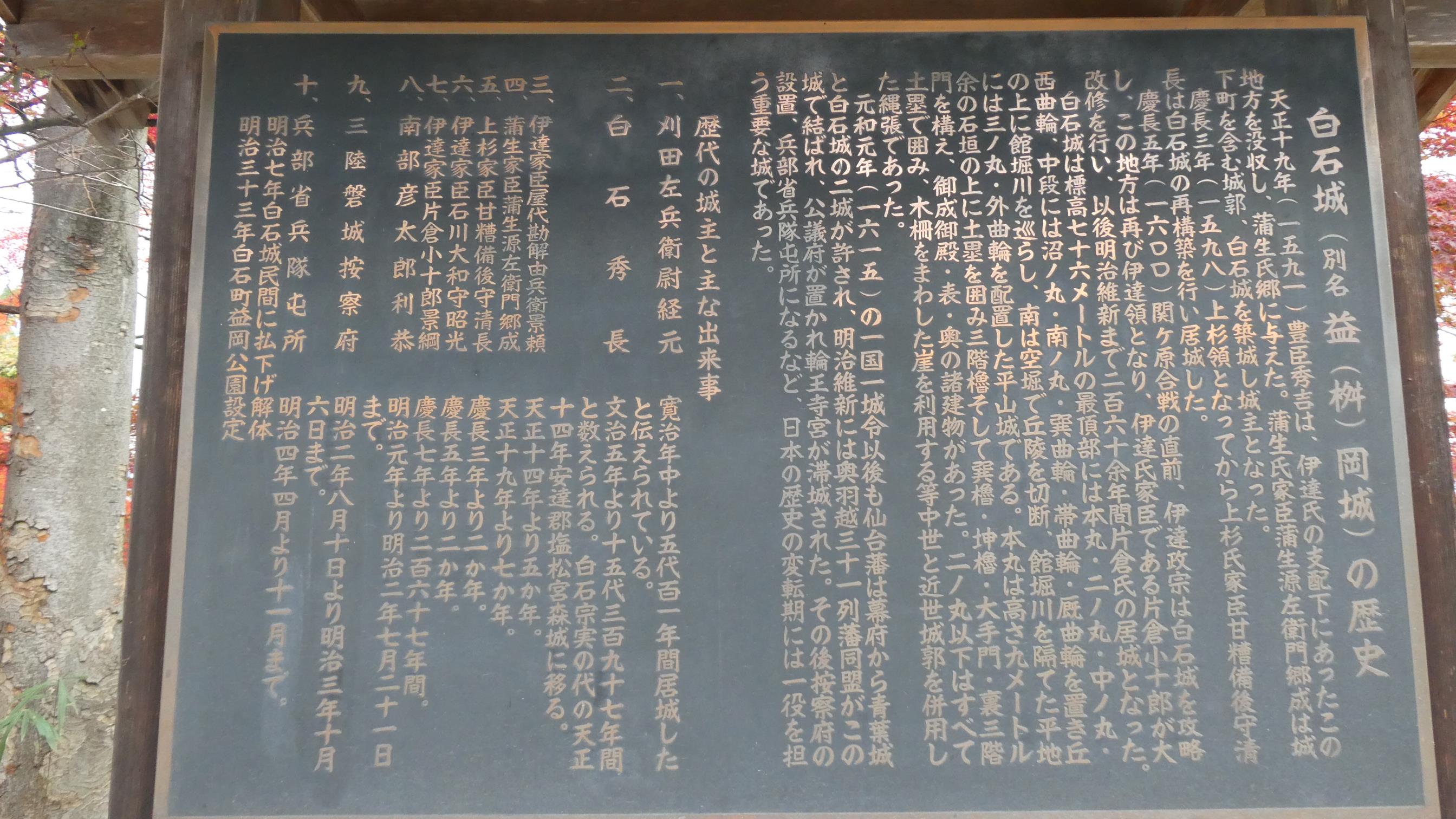 白石城は、関ケ原の合戦後 伊達政宗の家臣の片倉小十郎が大改修し、明治維新まで片倉氏の居城になっている