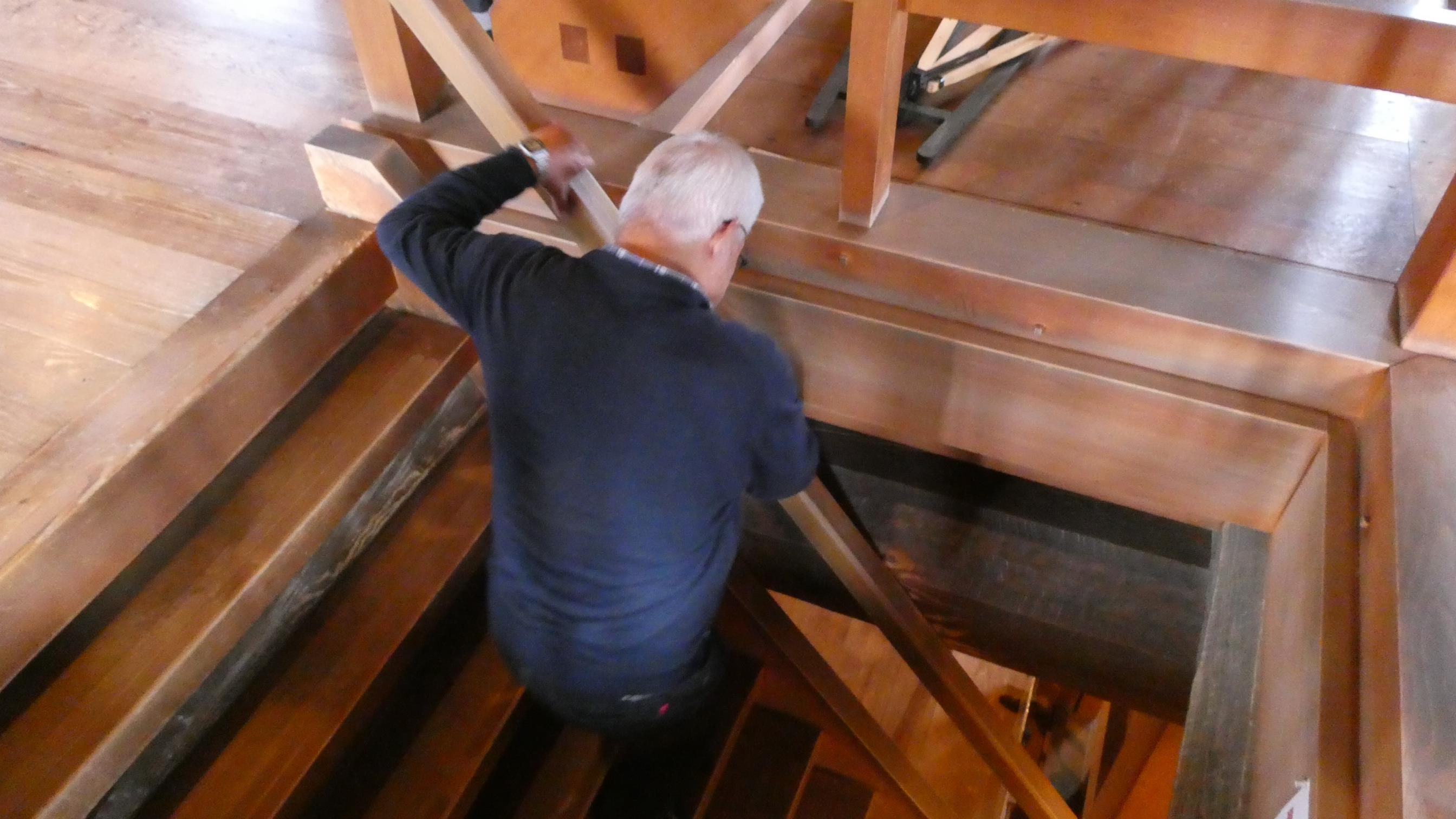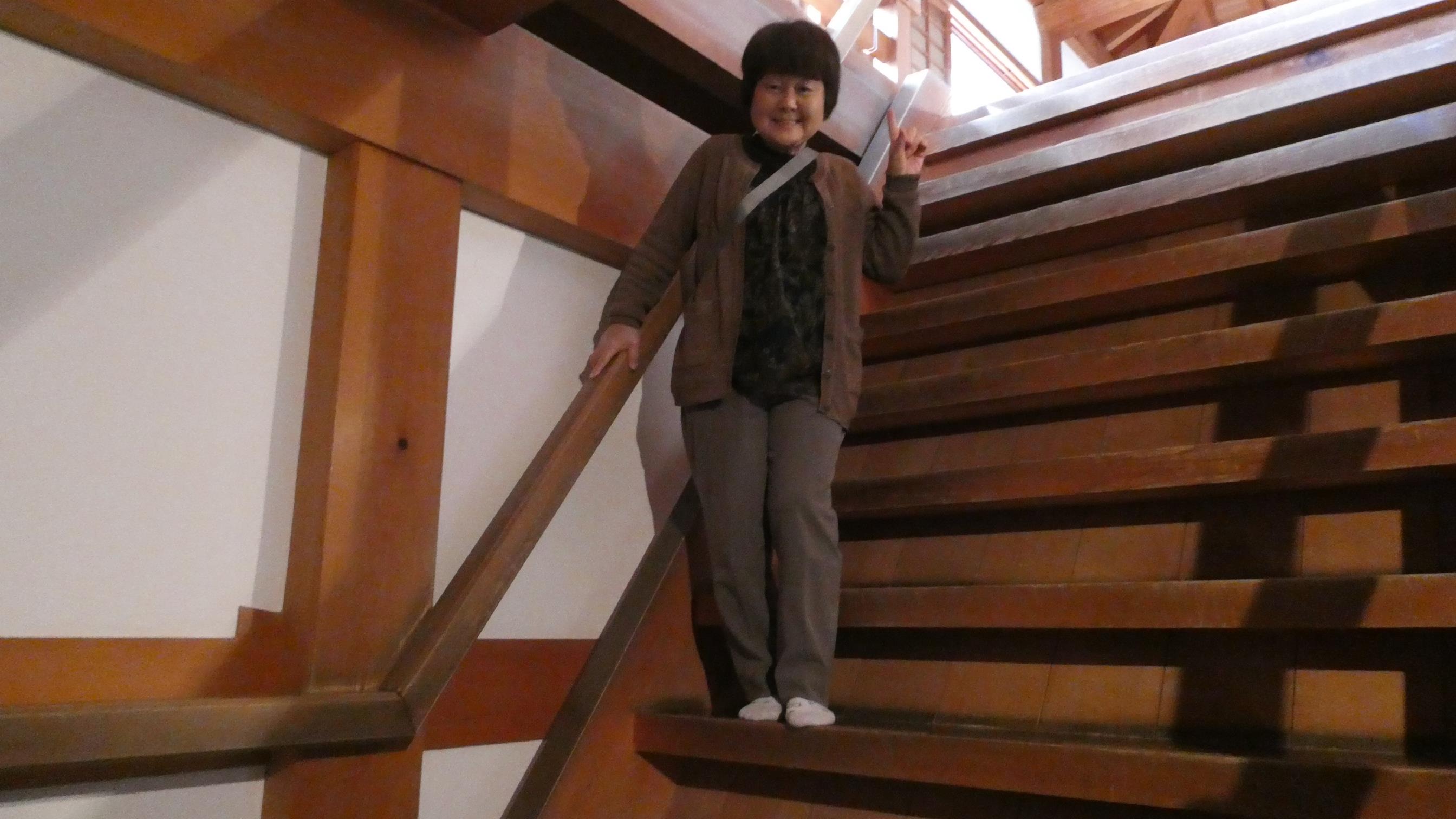 凄い急階段 城はこれが当たり前であり、名古屋城の改築で、エレベ−タは検討不要と思う