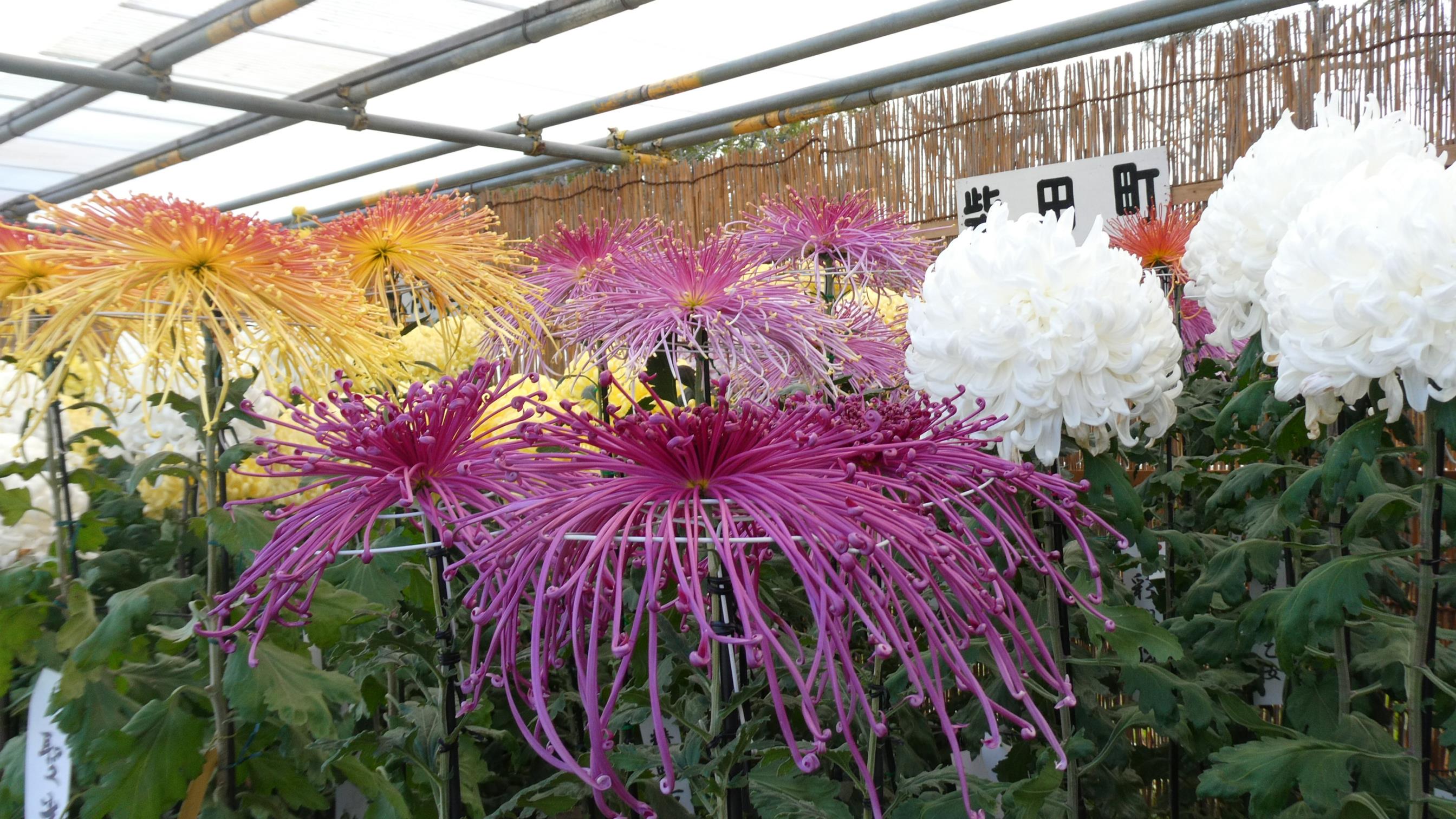 見事な菊が展示されている 宮城県の地域毎に区分けされている