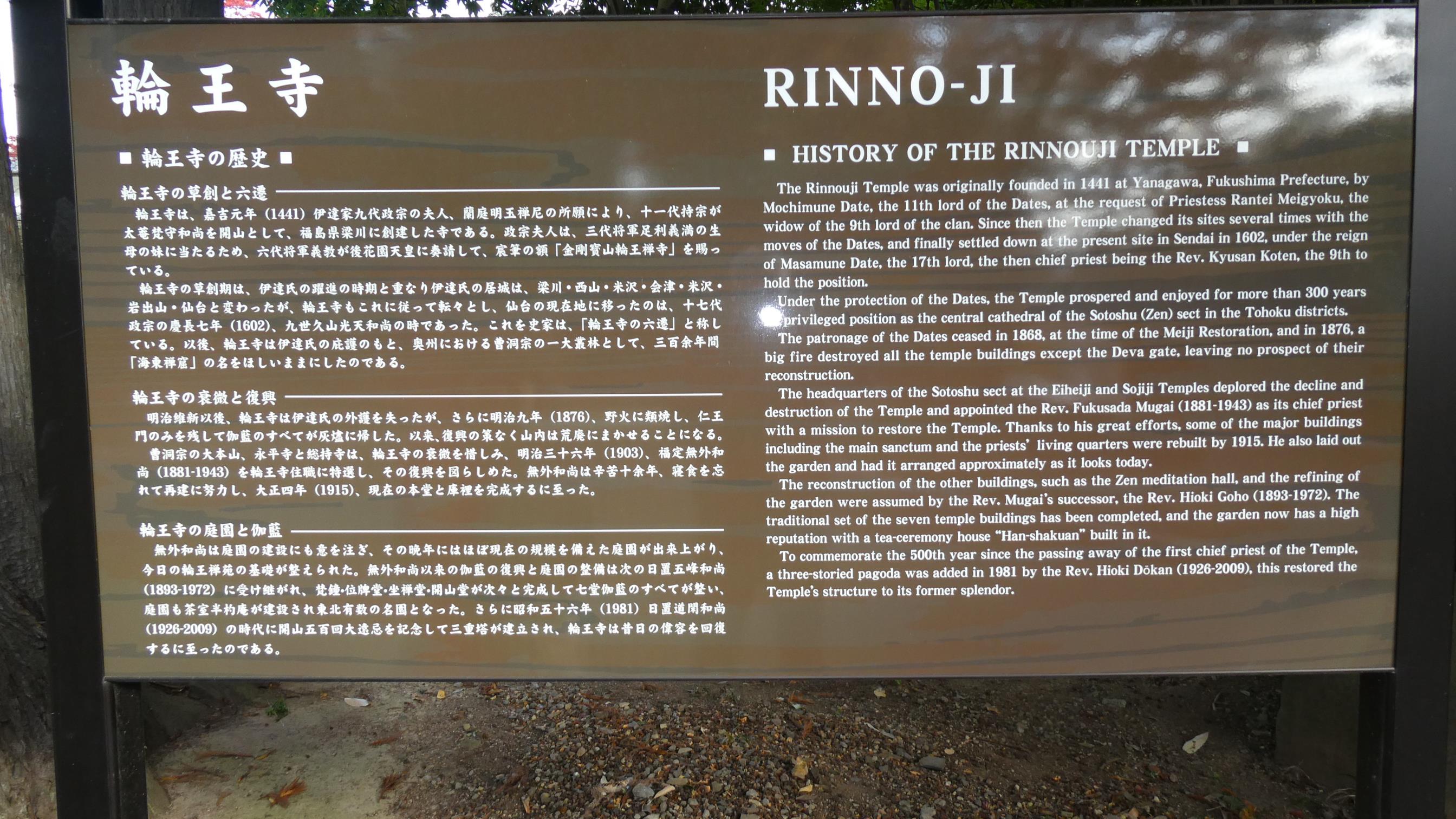 輪王寺は、伊達氏の第11代当主が開基 政宗が仙台城を構えた際に現在の場所に移している