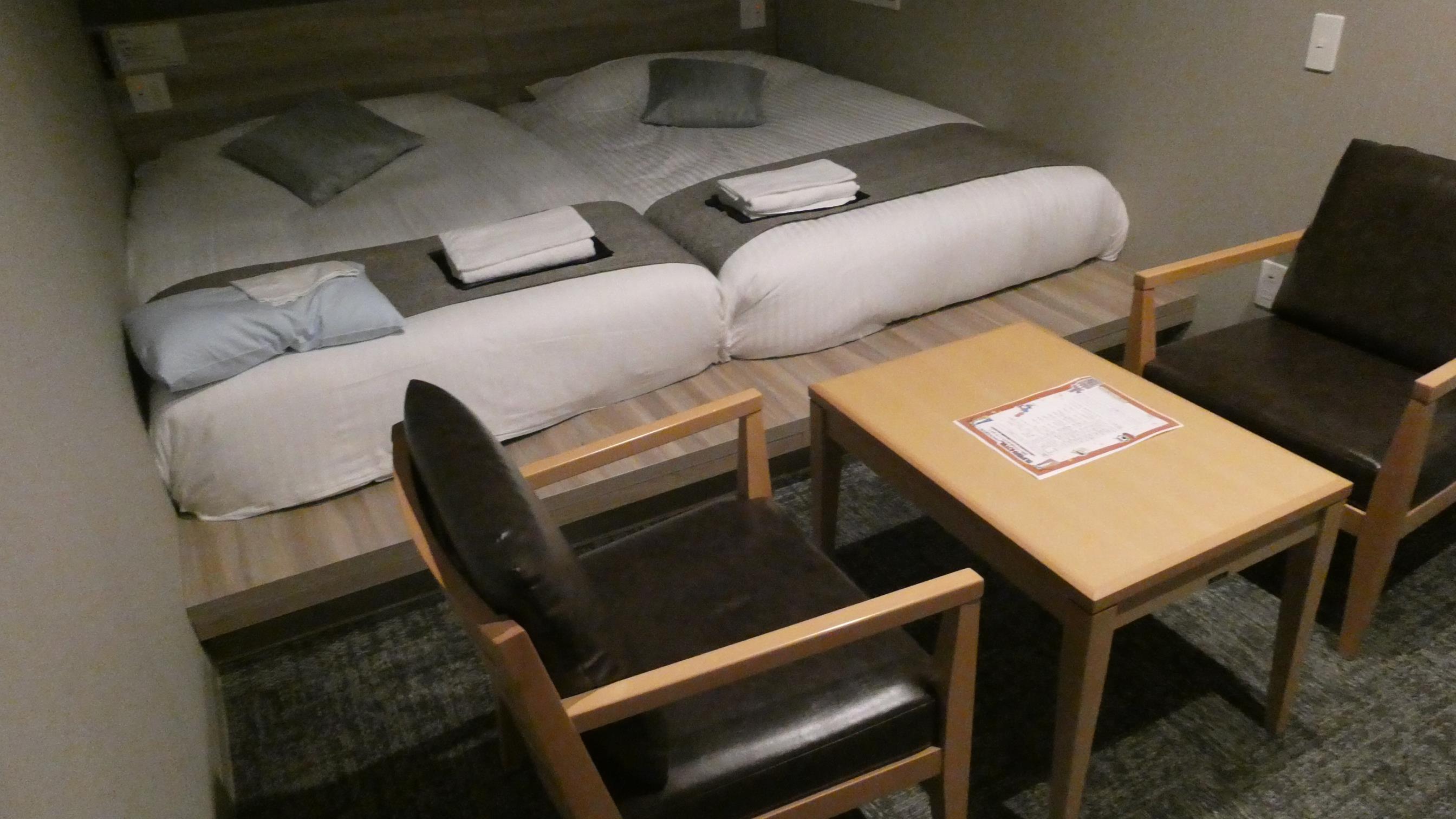 部屋はツインだが、ベットがくっついている これだと立ち上がるのに難儀する