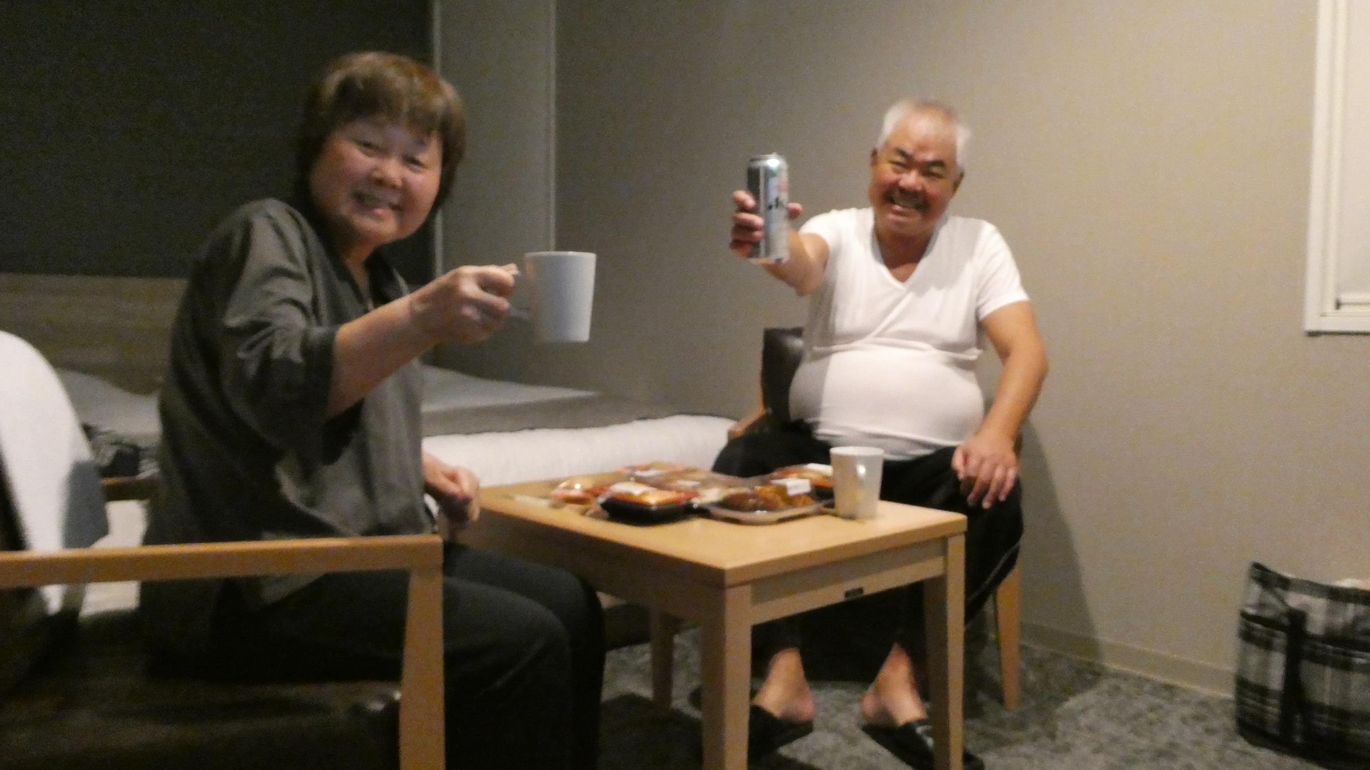 缶ビ−ルで乾杯 天然温泉に入った後で、ビールが旨い