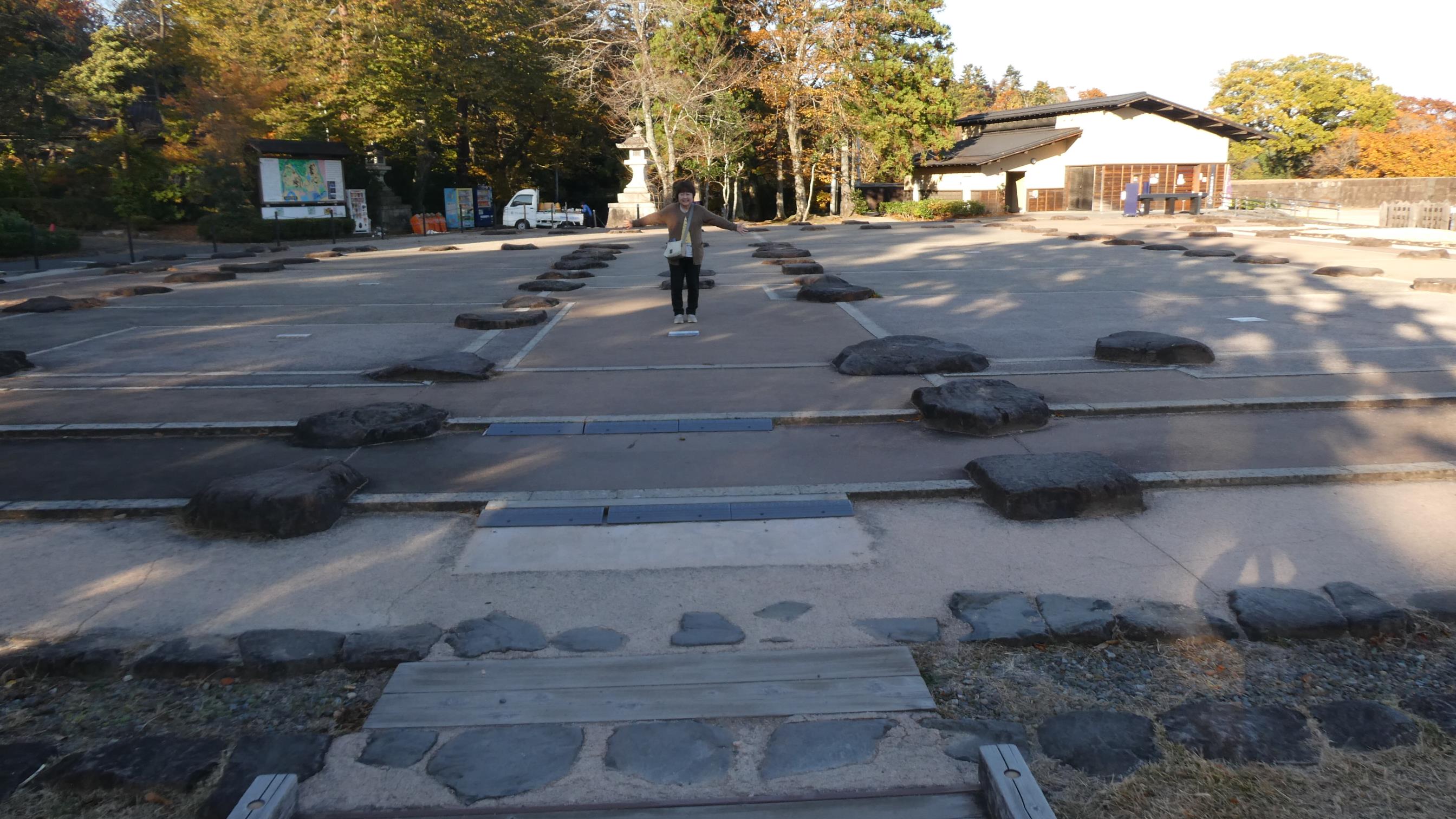 青葉山麓の広瀬川から、山頂の本丸までは約1kmの急坂で、とてもキツかった QRコードで本丸大広間を再現出来る