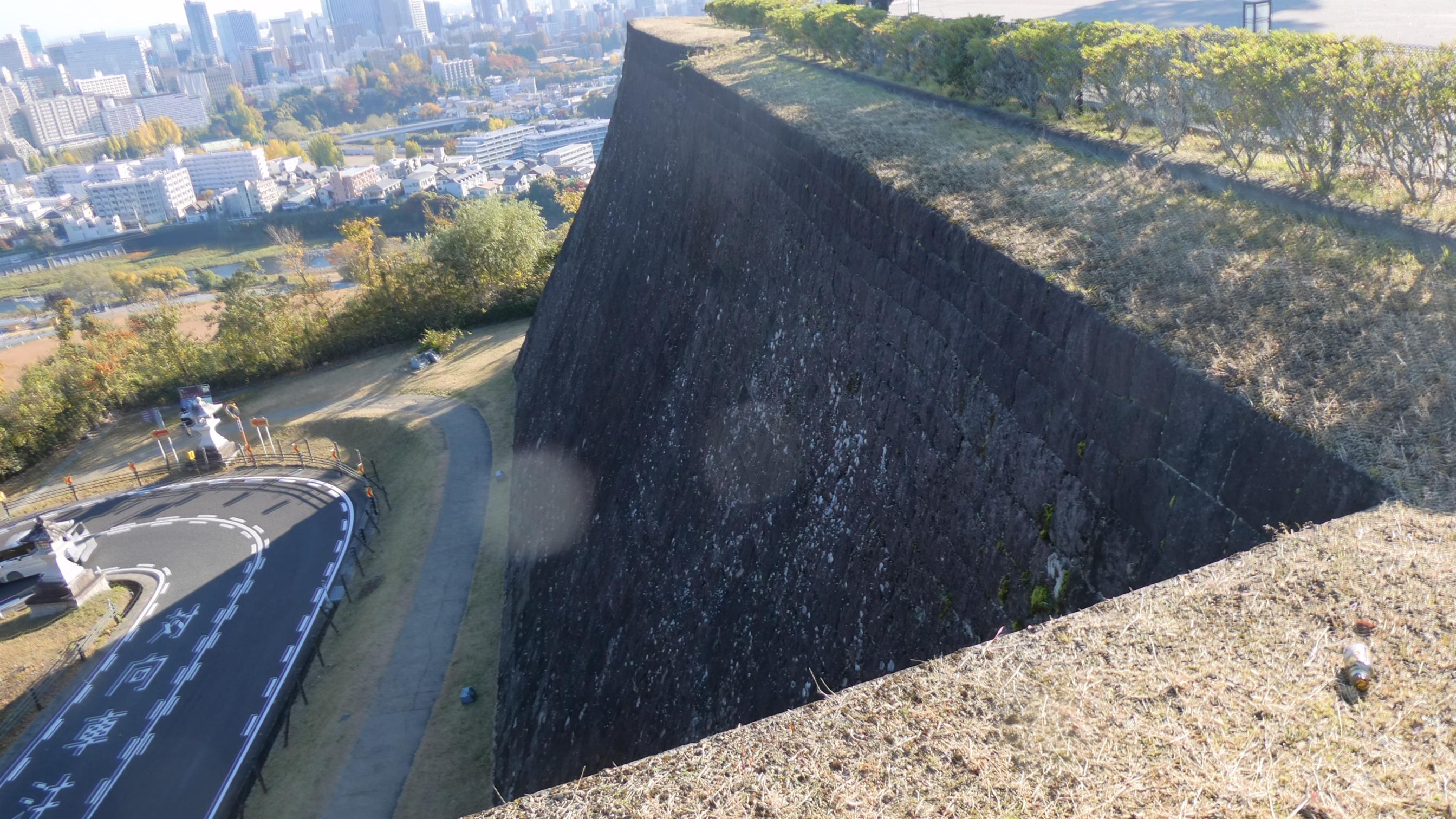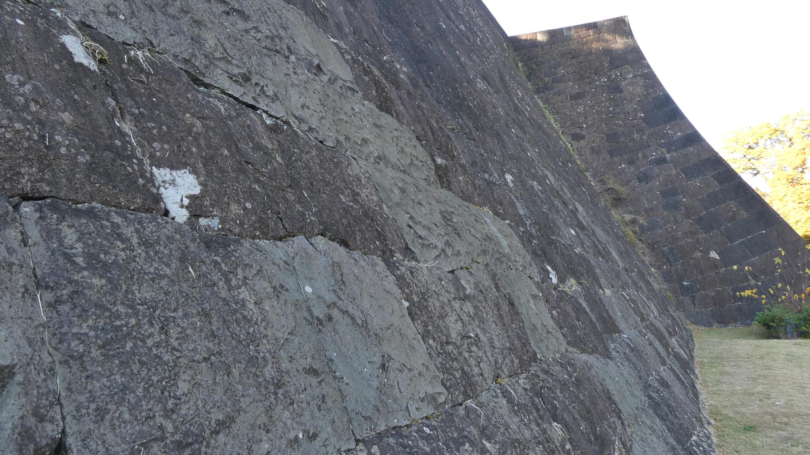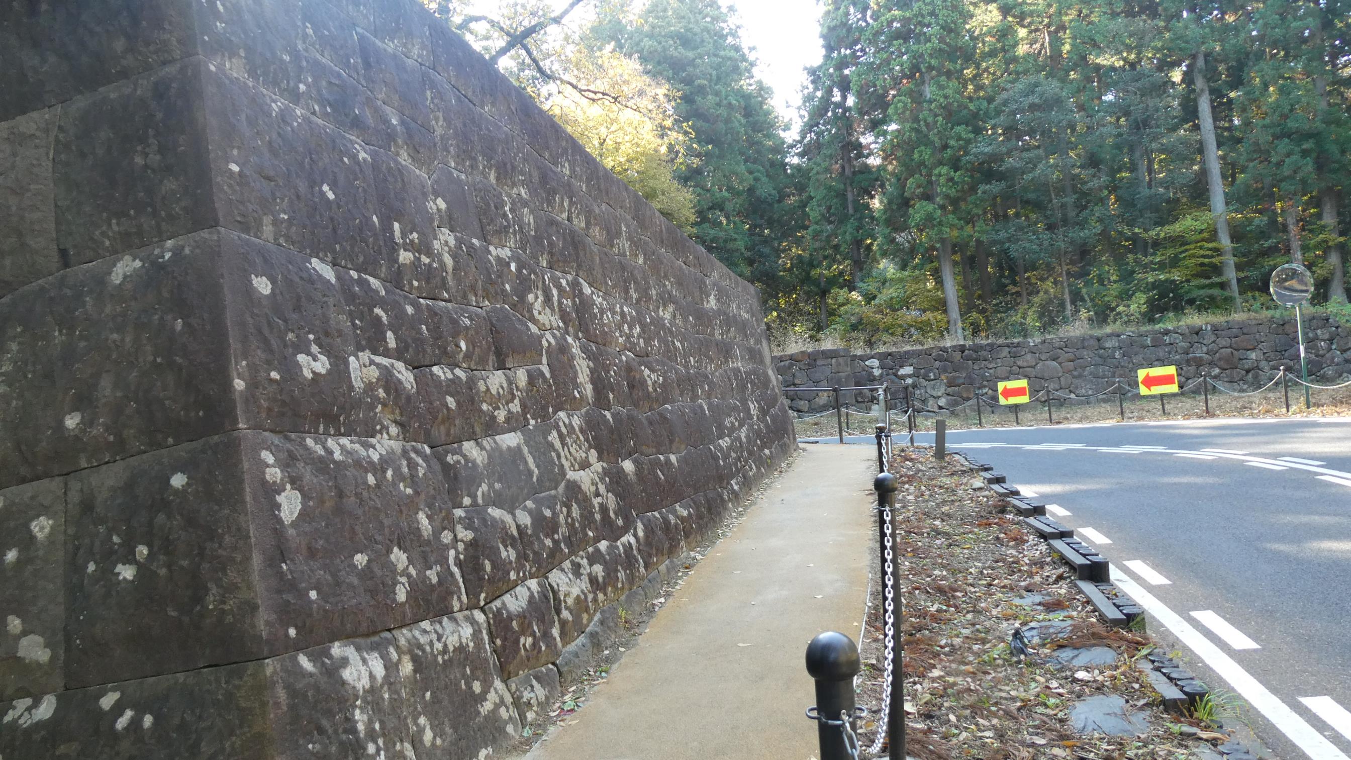 本丸北西石垣 車が多い車道から見るしかなく、かなり危険