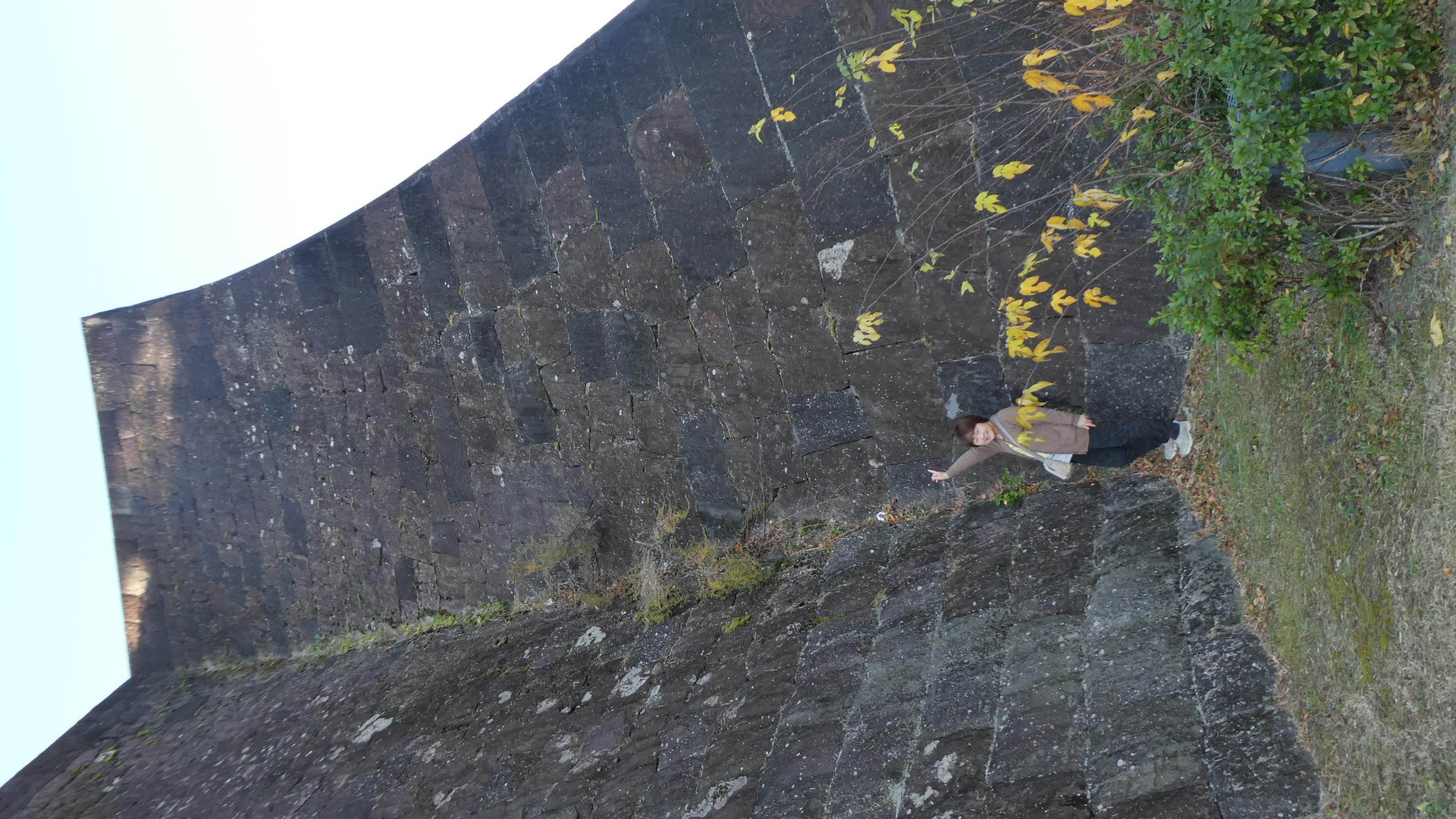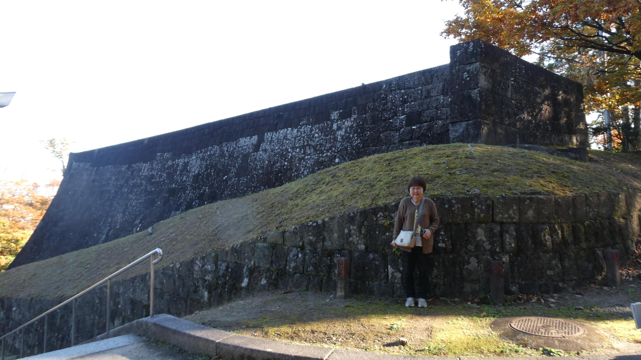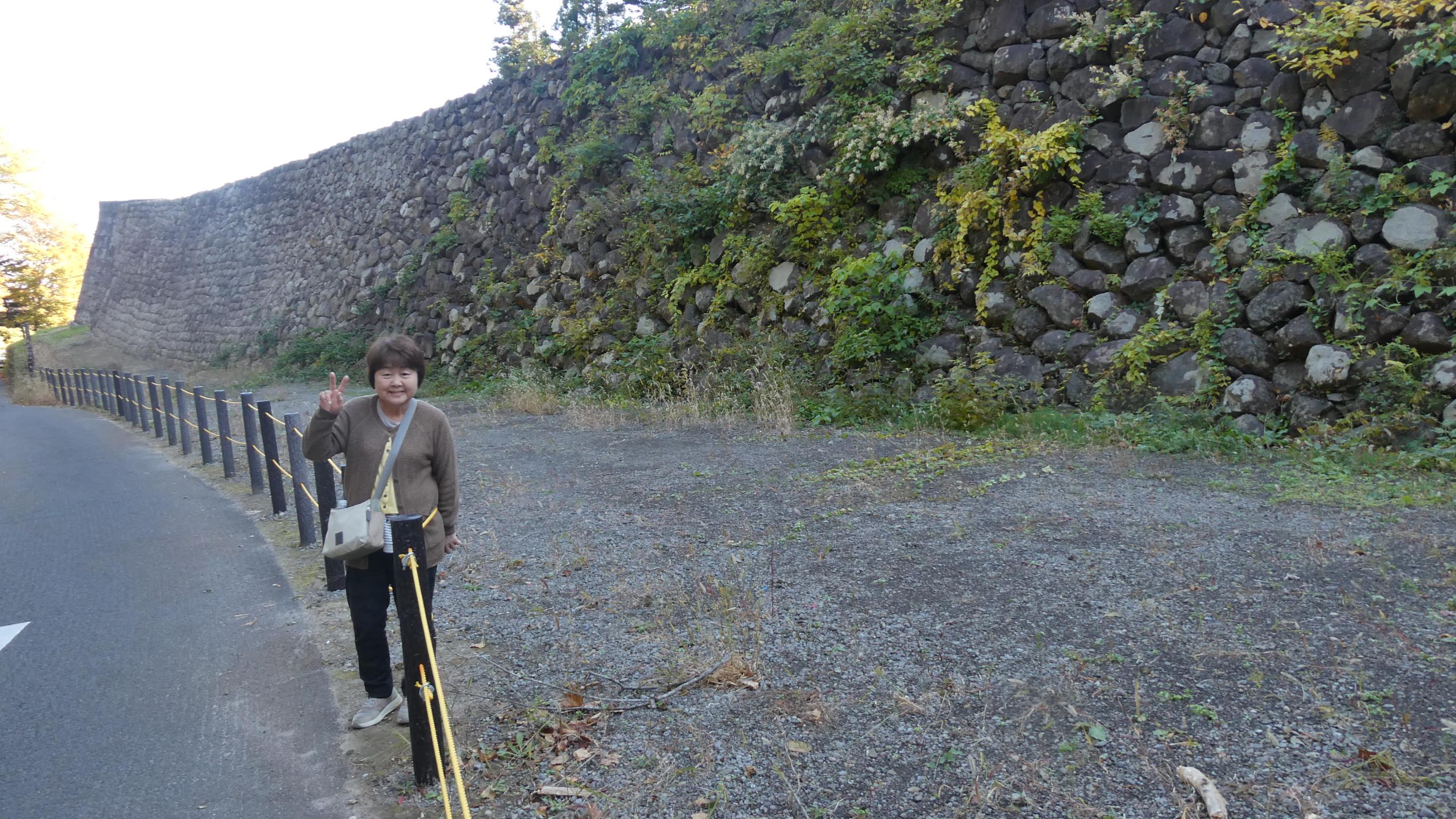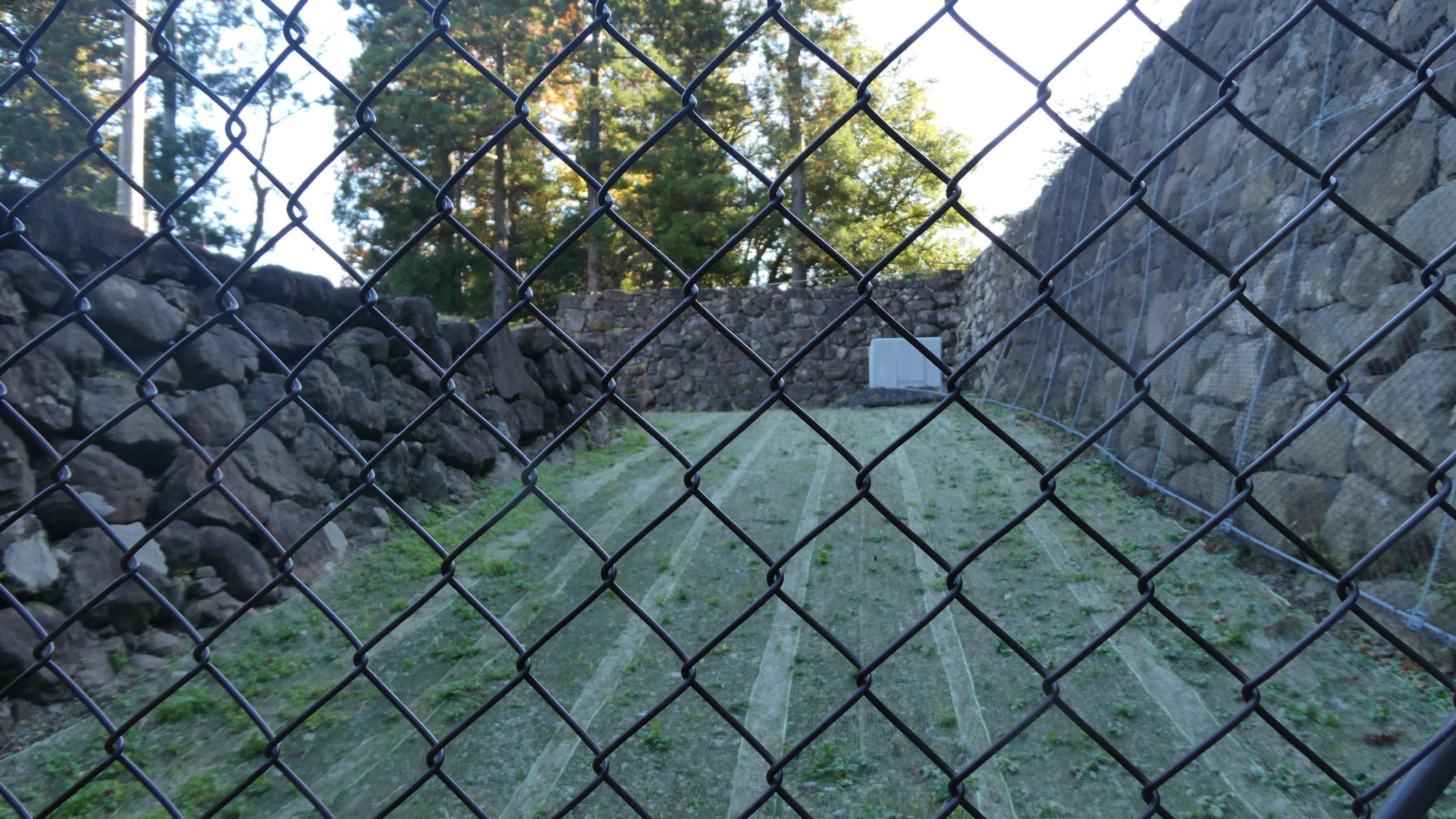 本丸北壁石垣の上に上がるが、柵があり端に立って覗けない