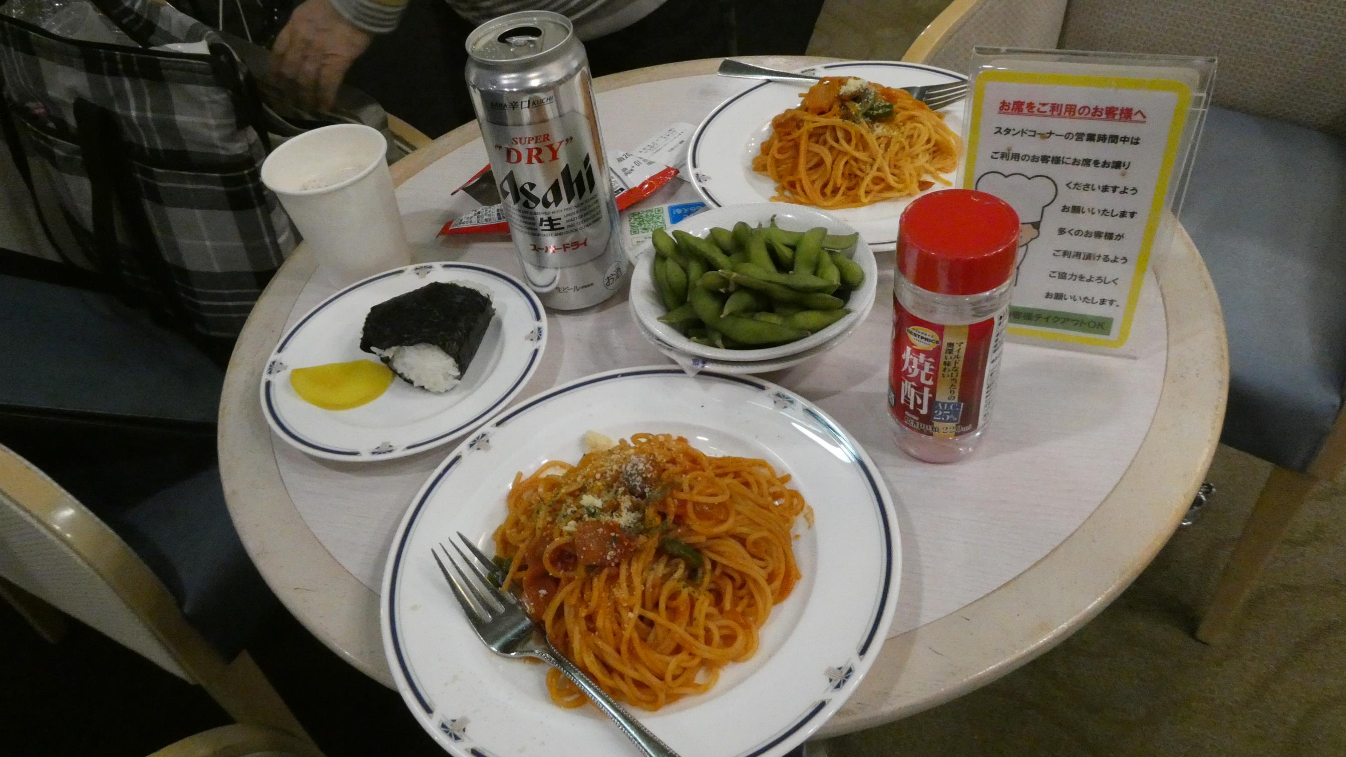 夕食は、来た時と同じで、ナポリタンとお握りと枝豆
