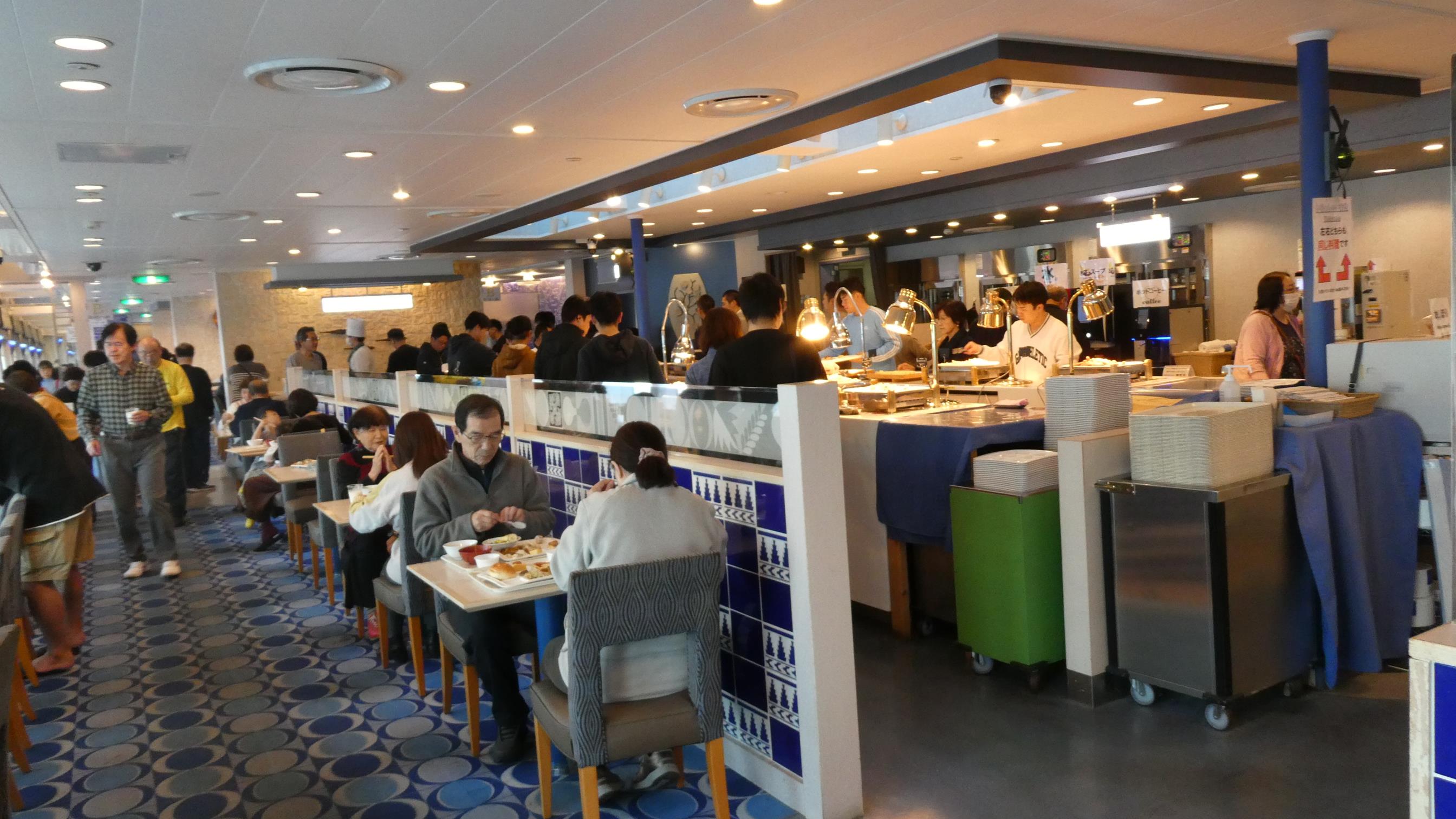前日の昼にフェリ−に乗って、翌日の朝食だから、乗船者の多くがレストラン利用すると思われる