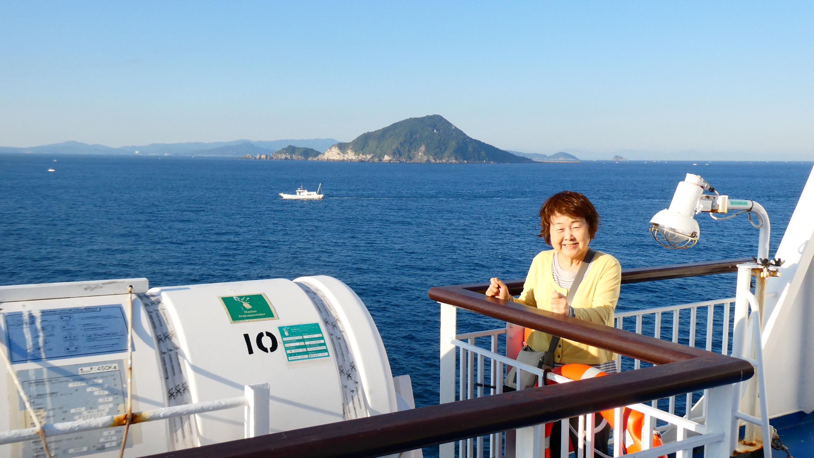 デッキの反対に移動すると、三島由紀夫の潮騒で有名な、神島が見える