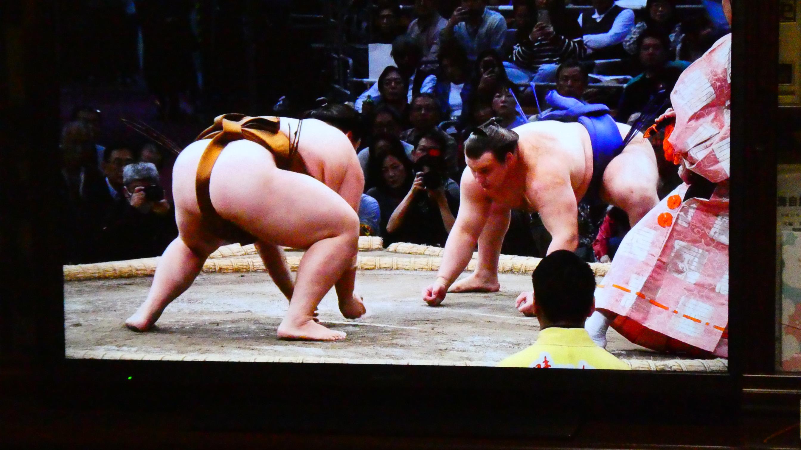 大相撲を見ながら、打上料理を楽しむ 安青錦と王鵬の関脇同士の対戦、激しい相撲で見応えがあった