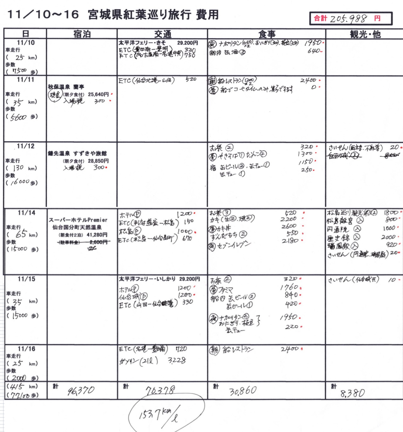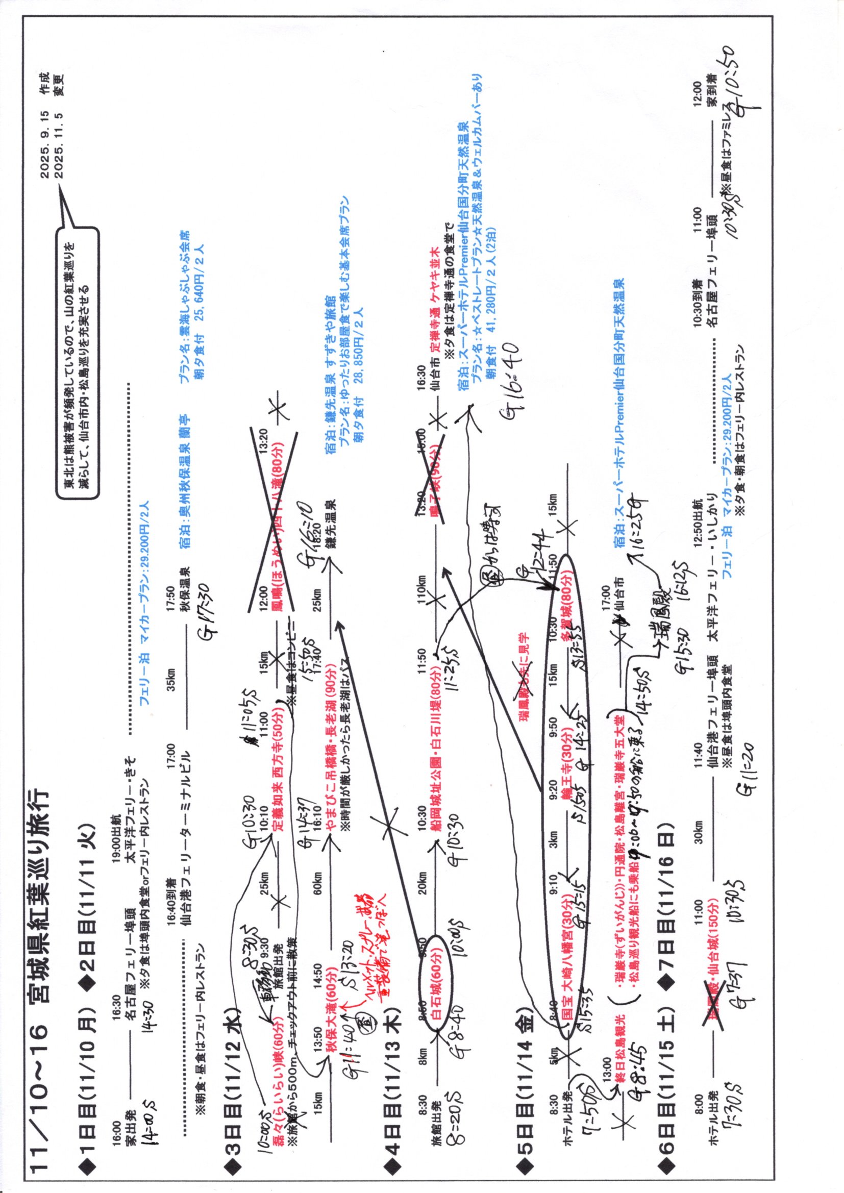 10時20分フェリ−は名古屋港に着岸し、11時家に無事到着して、今回の宮城県紅葉巡り旅行が終了
