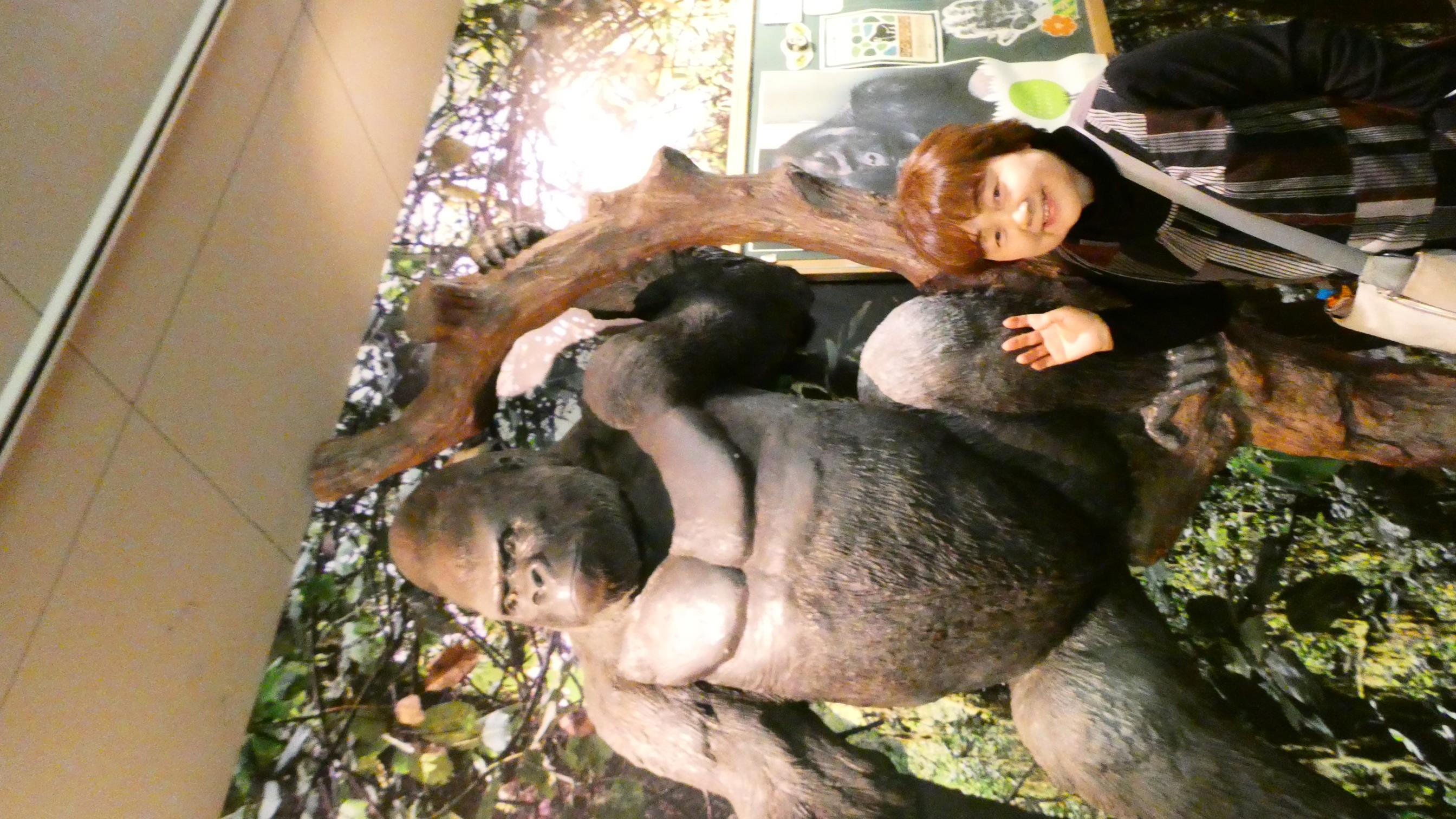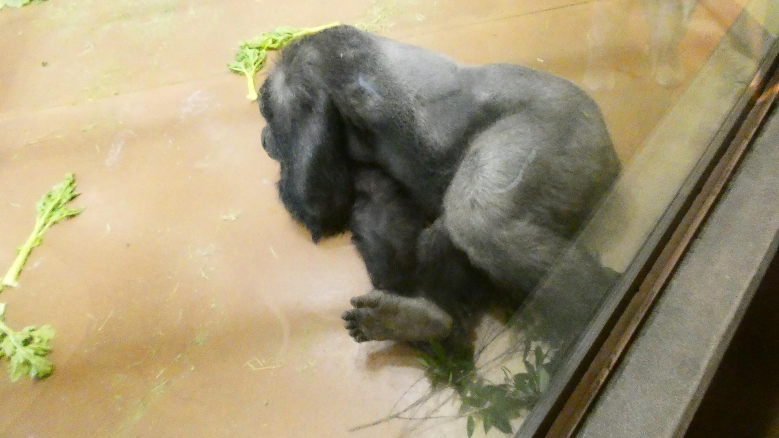 奥に正面を向くゴリラがいたが、ガラスが汚くキレイに撮れず