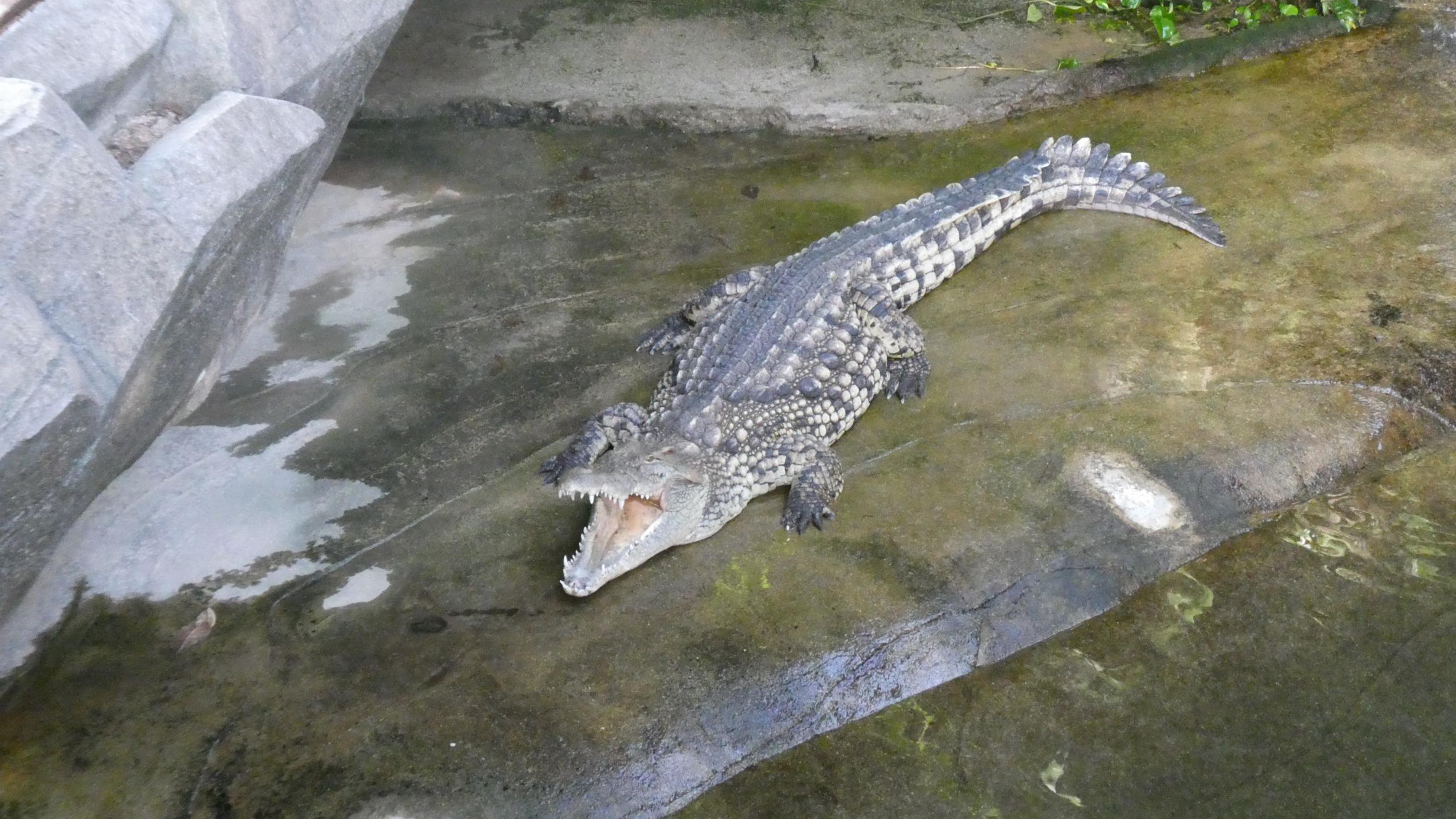 口をあけっ放しのワニ 口をあけたまま全然動かず