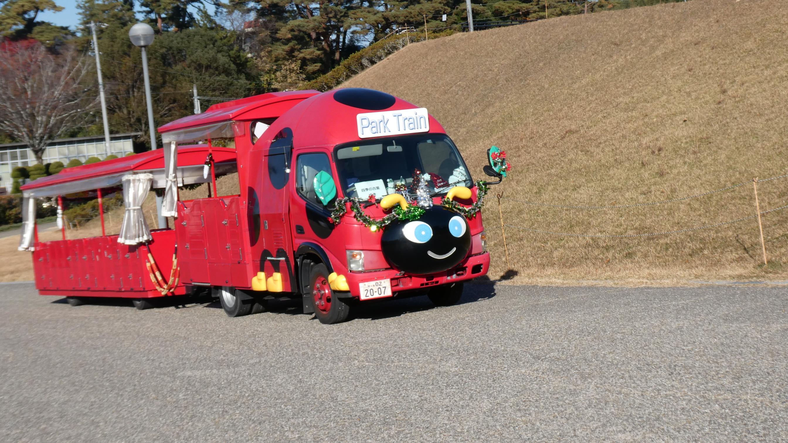 移動のパークトレインが走っているが、散歩に来たので乗らない