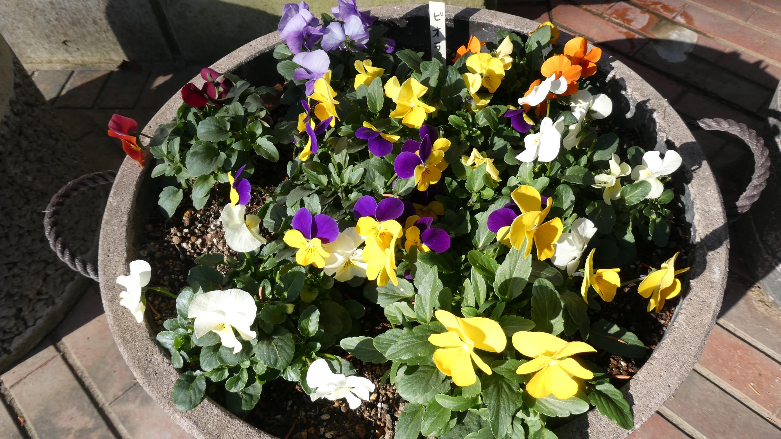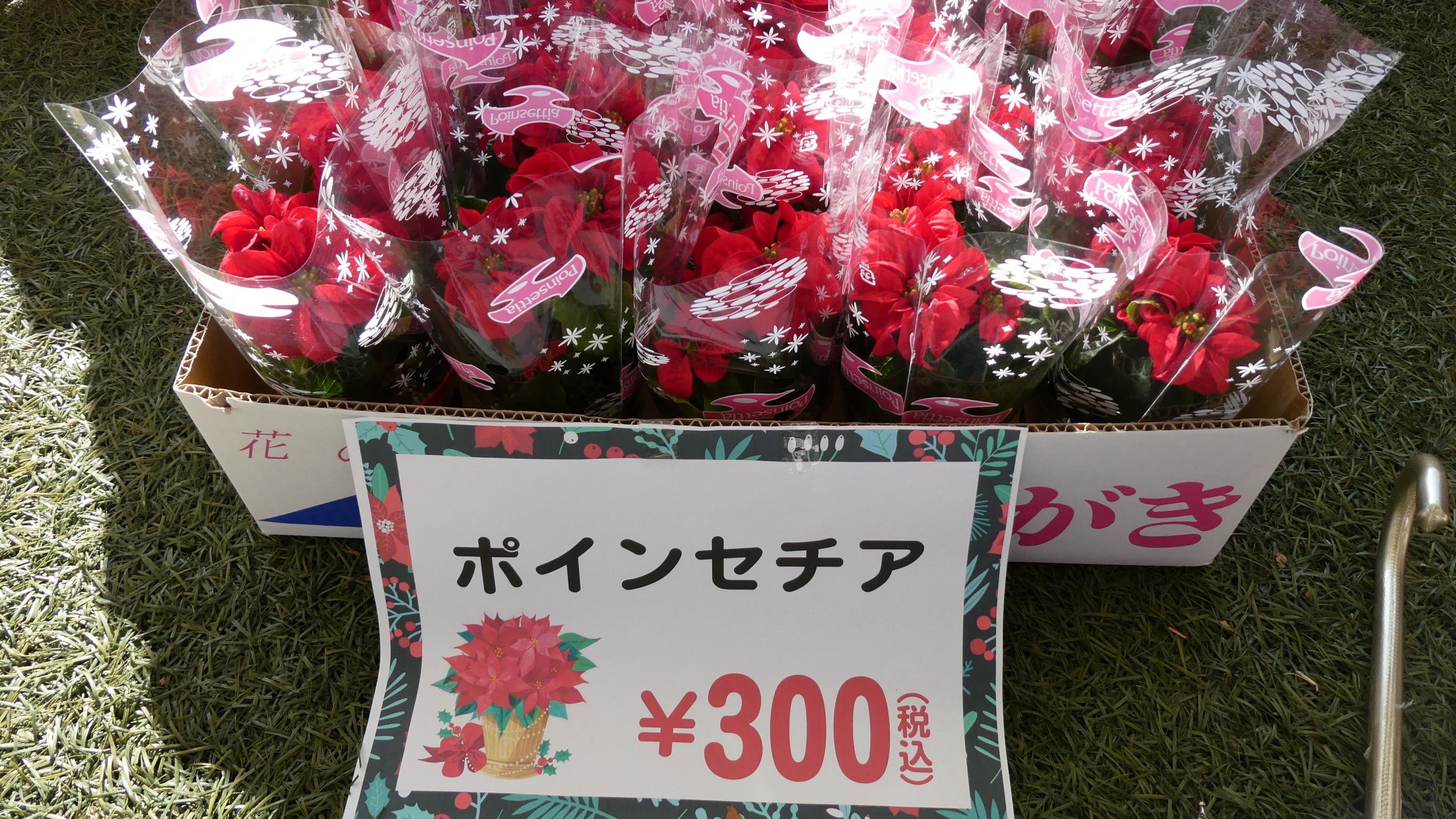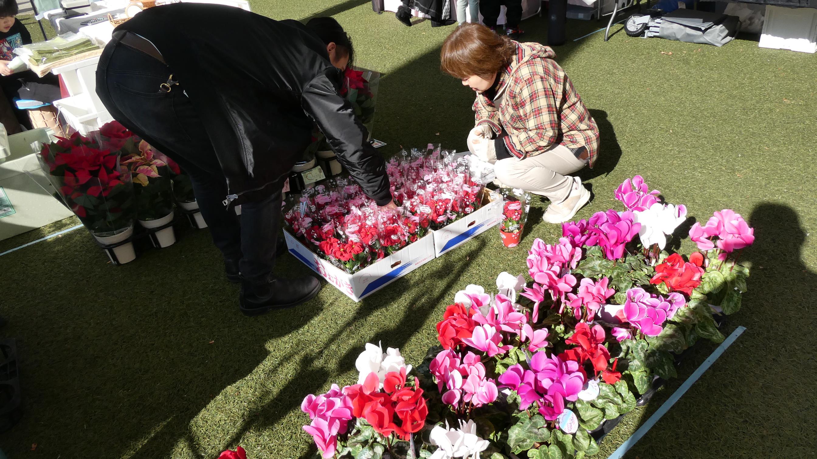 広場で市があり、とても色鮮やかなシクラメンとポインセチアを売っている