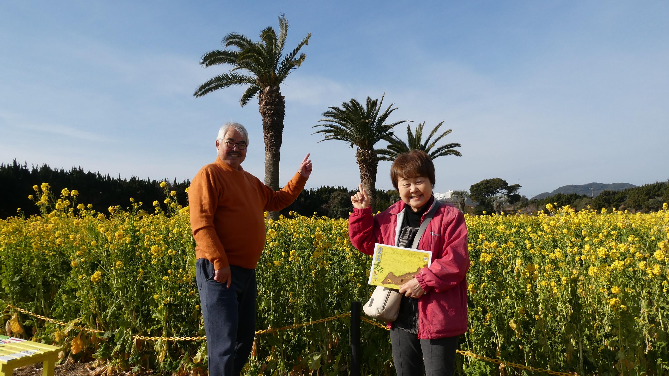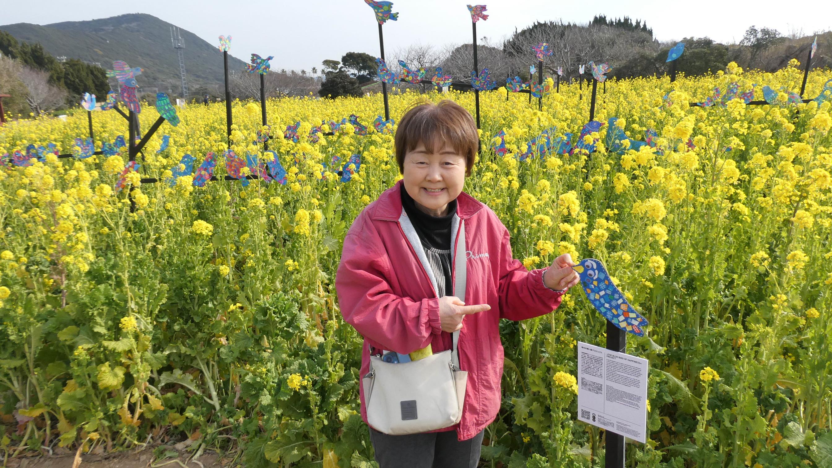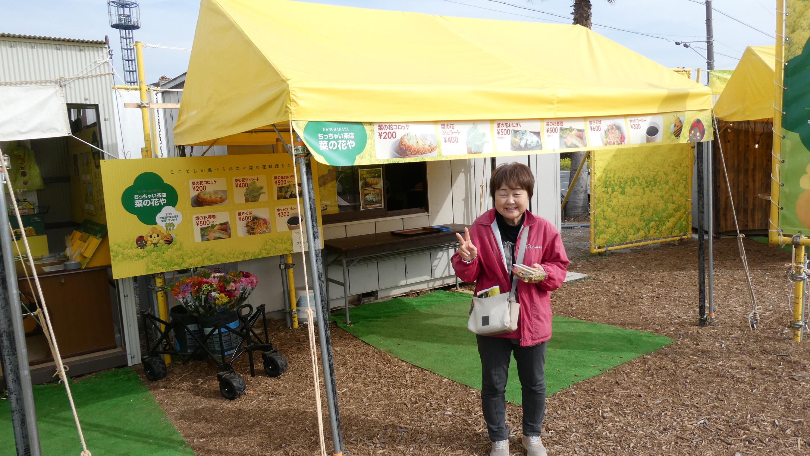 菜の花に囲まれた写真撮り ※花畑の中には入っていない