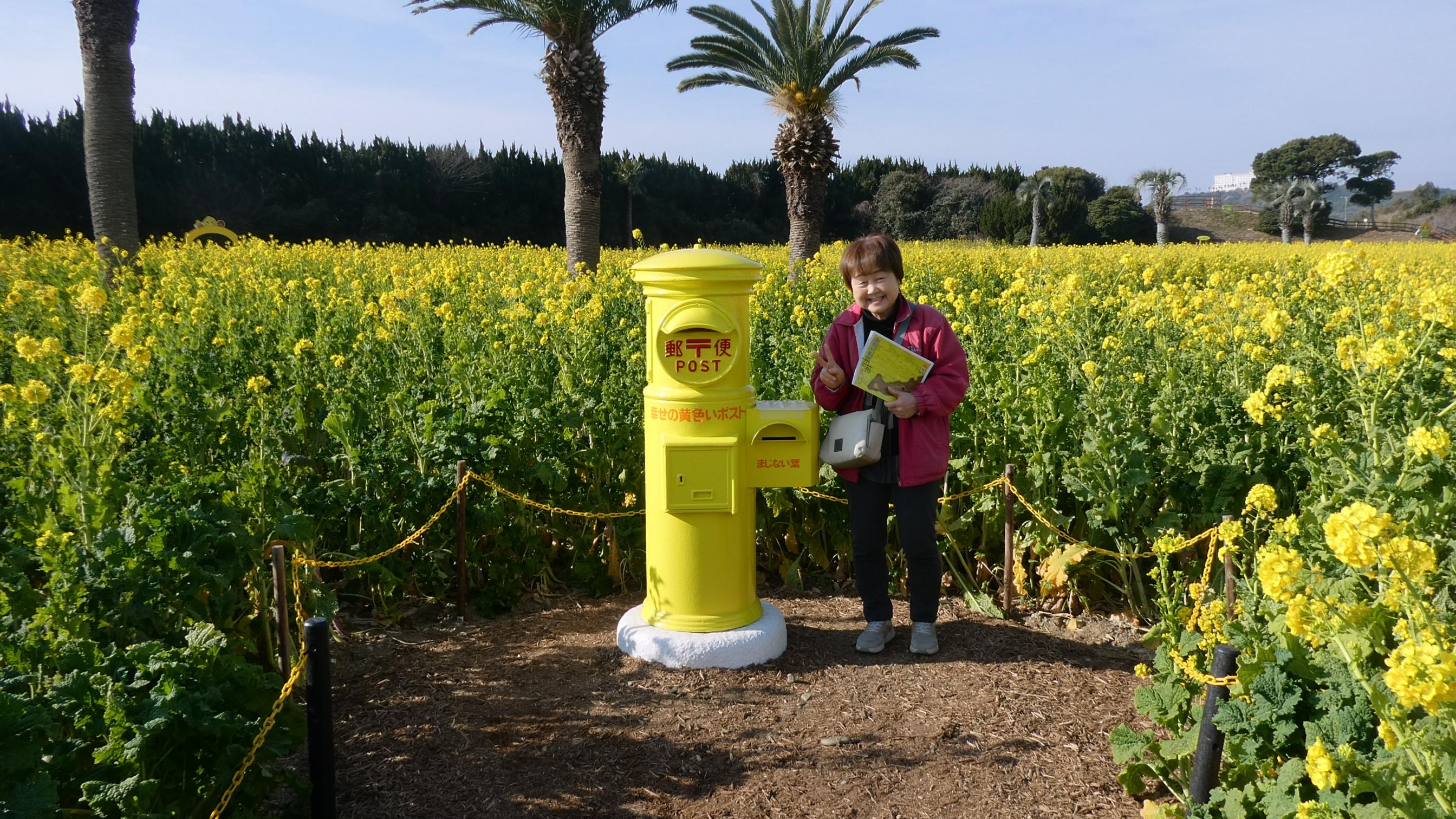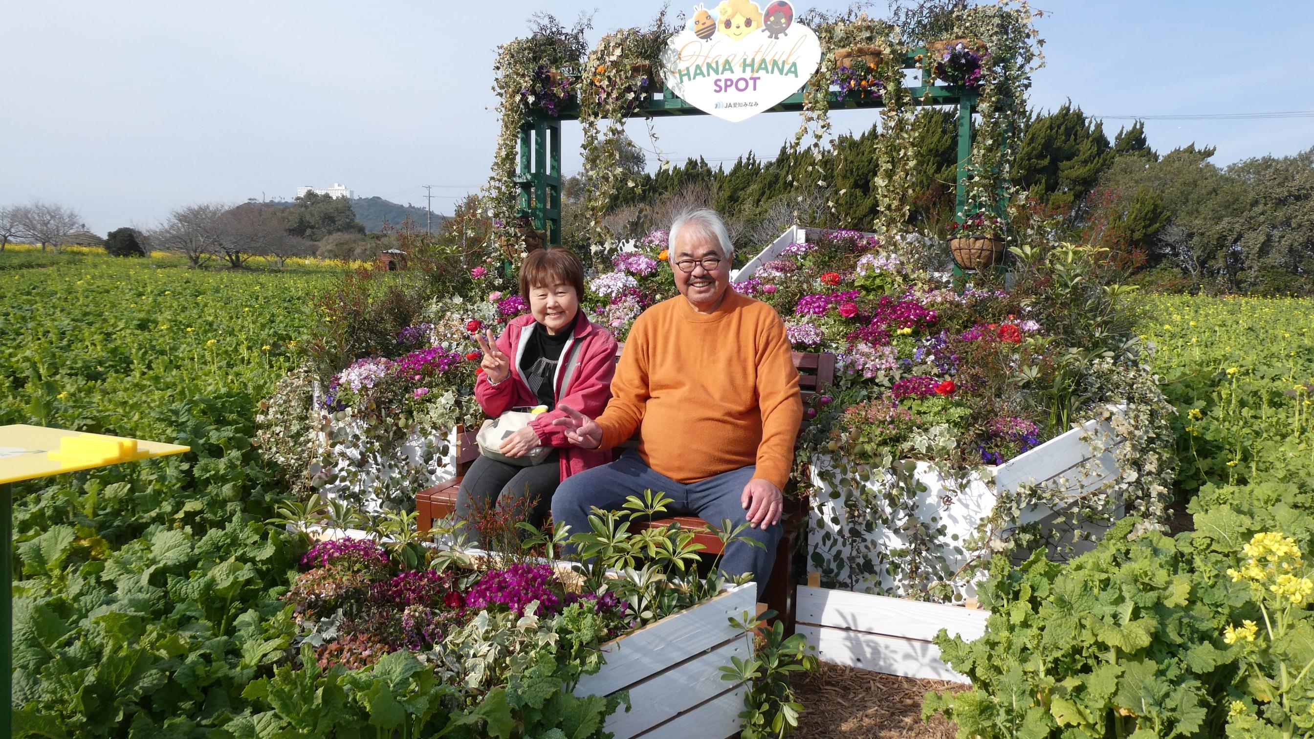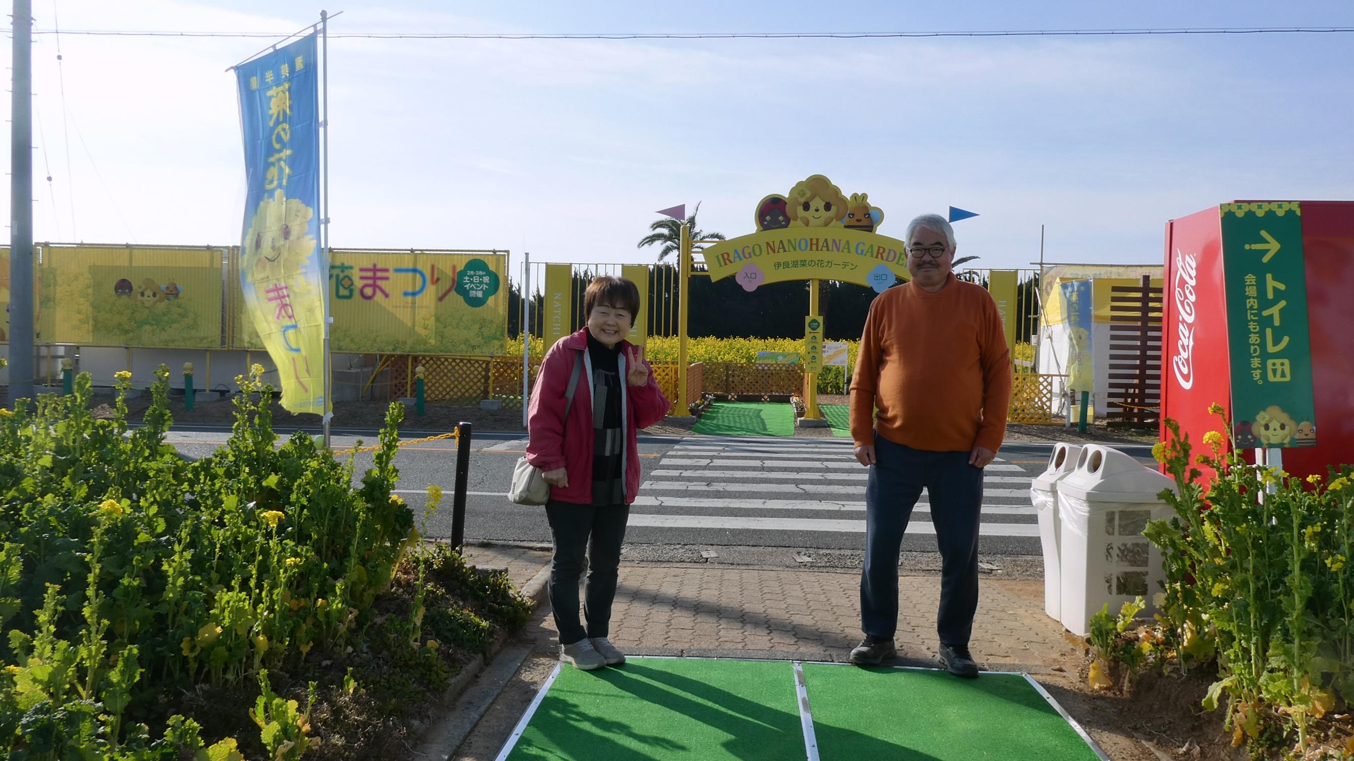 菜の花に囲まれた写真撮り ※花畑の中には入っていない