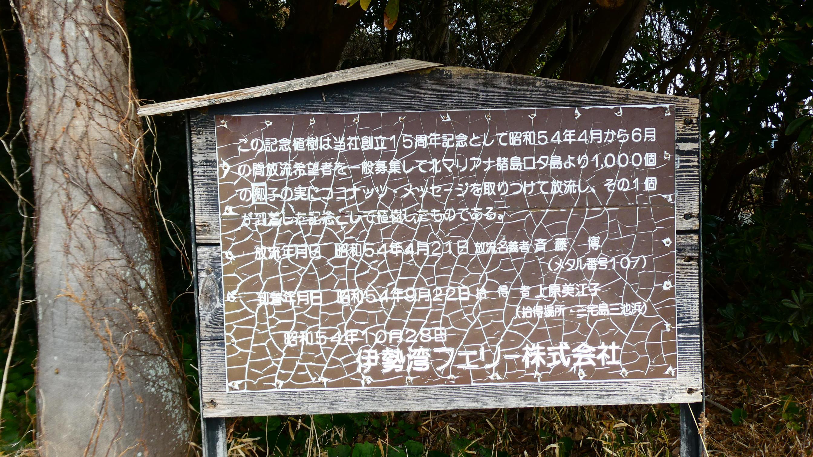 マリアナ諸島ロタ島から放流した椰子の実が、ここに到着したとある