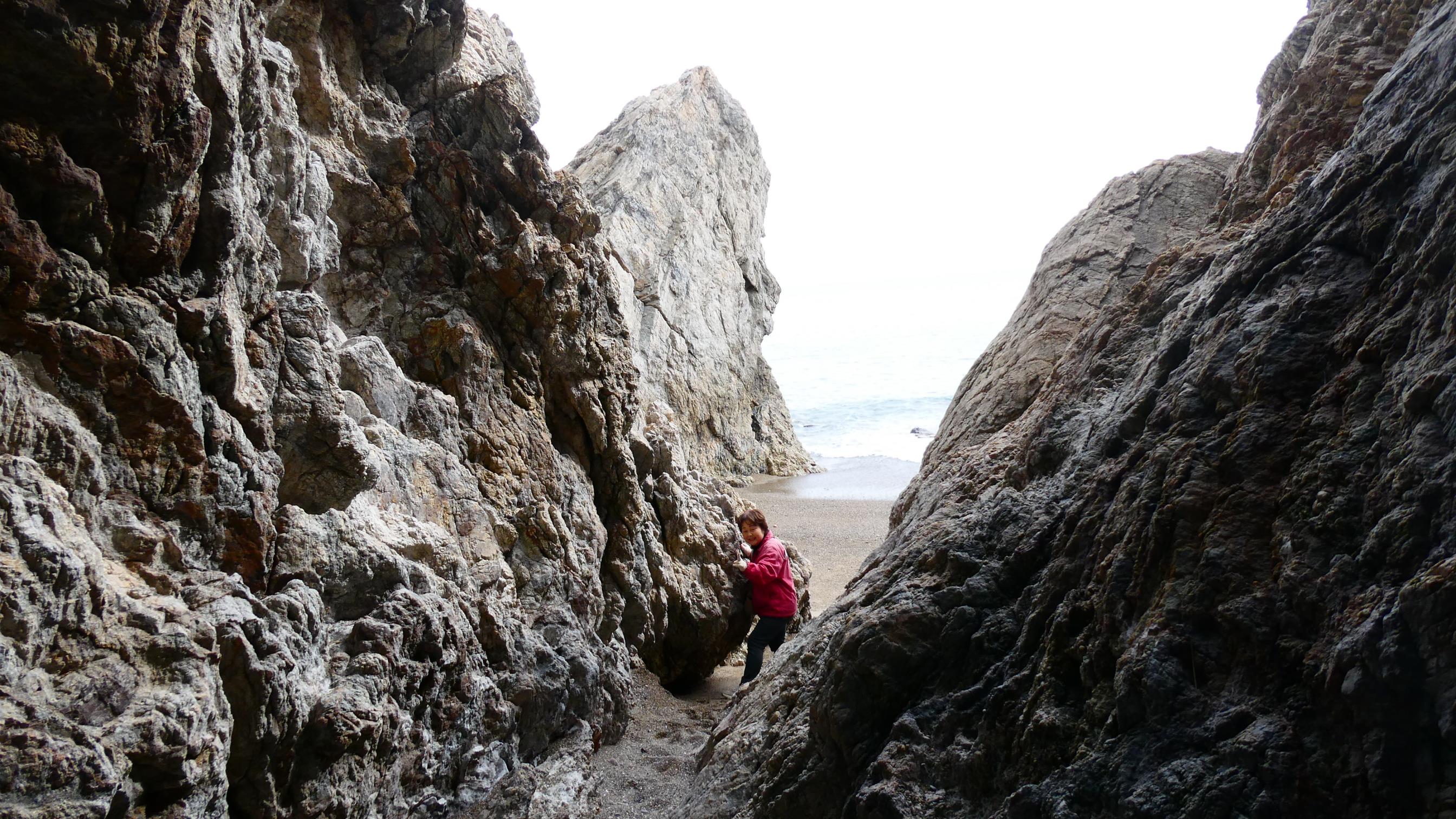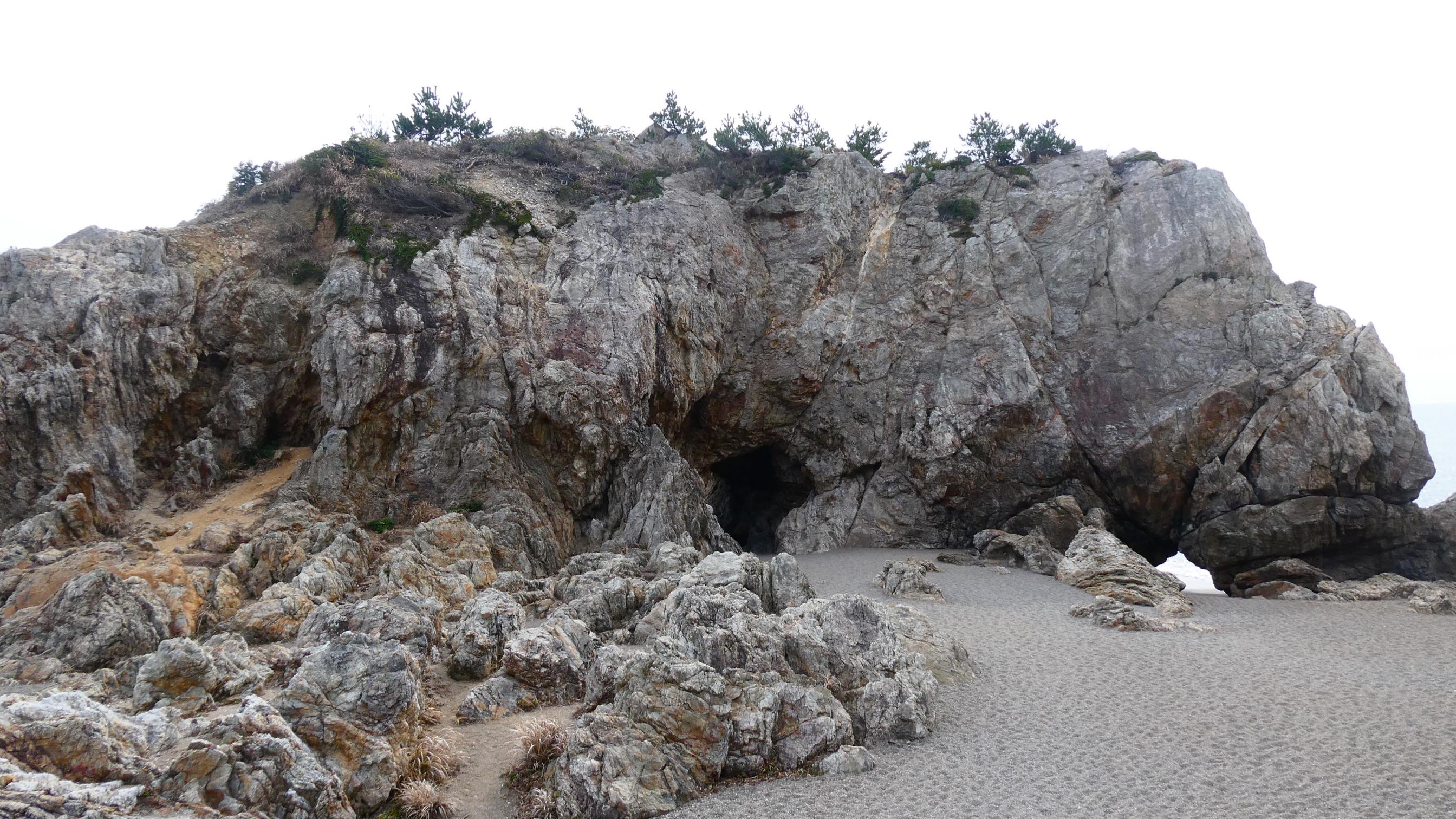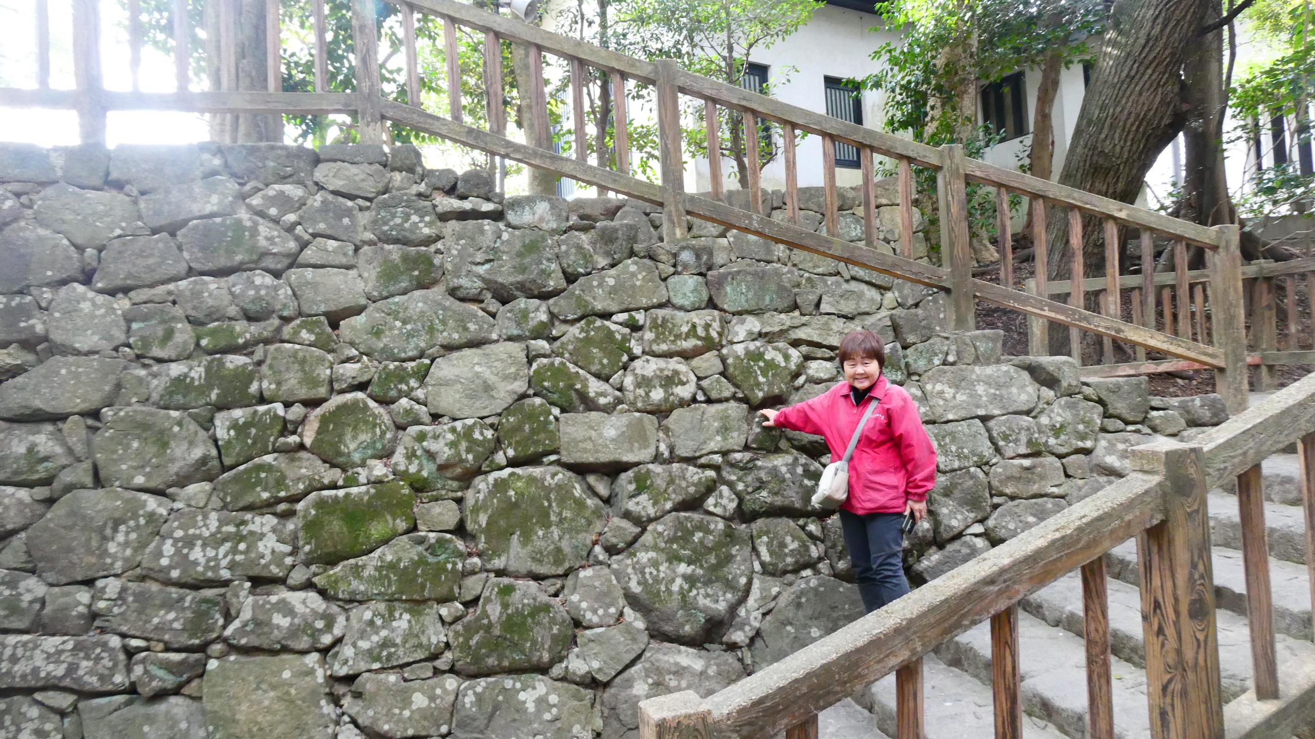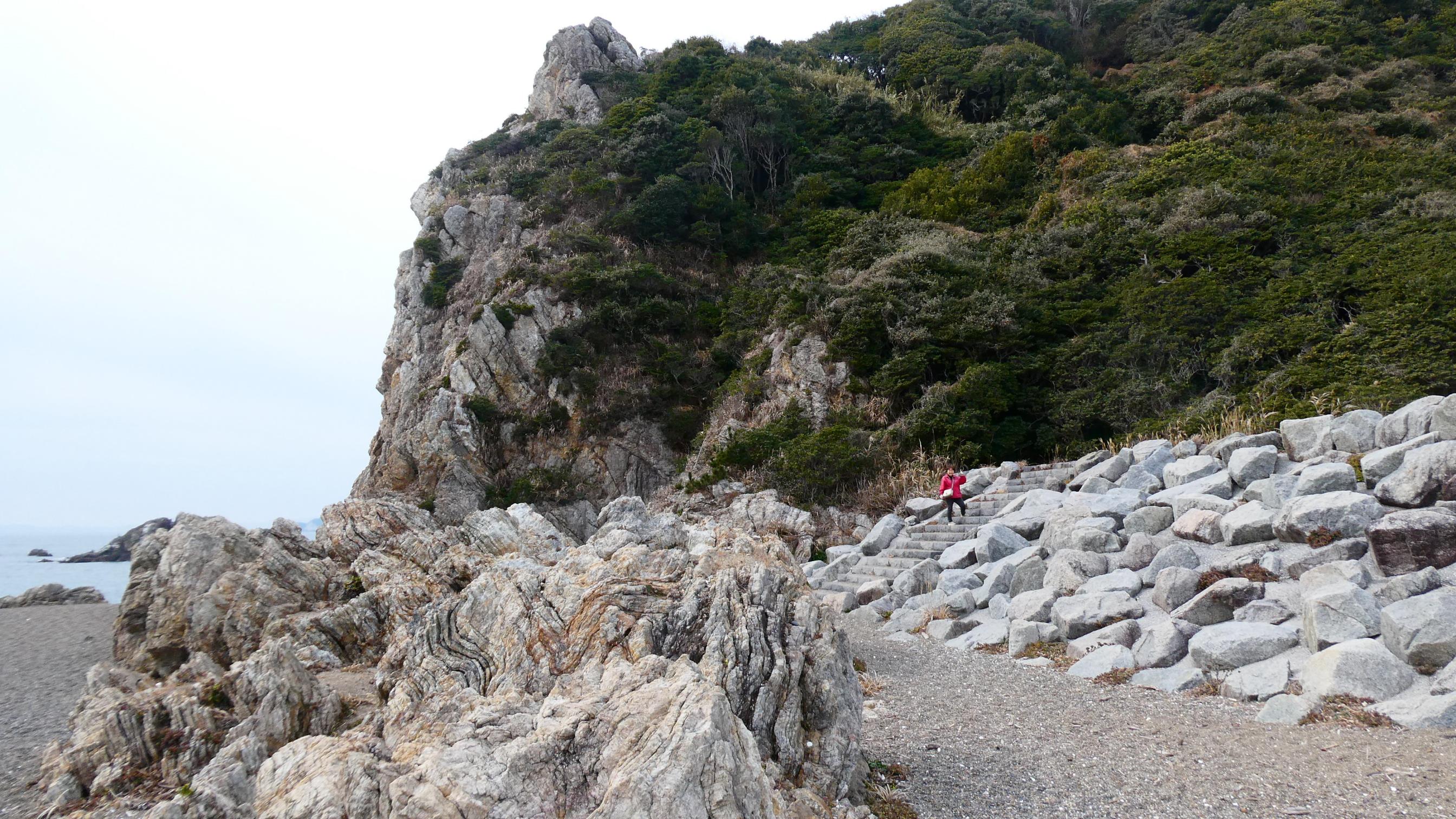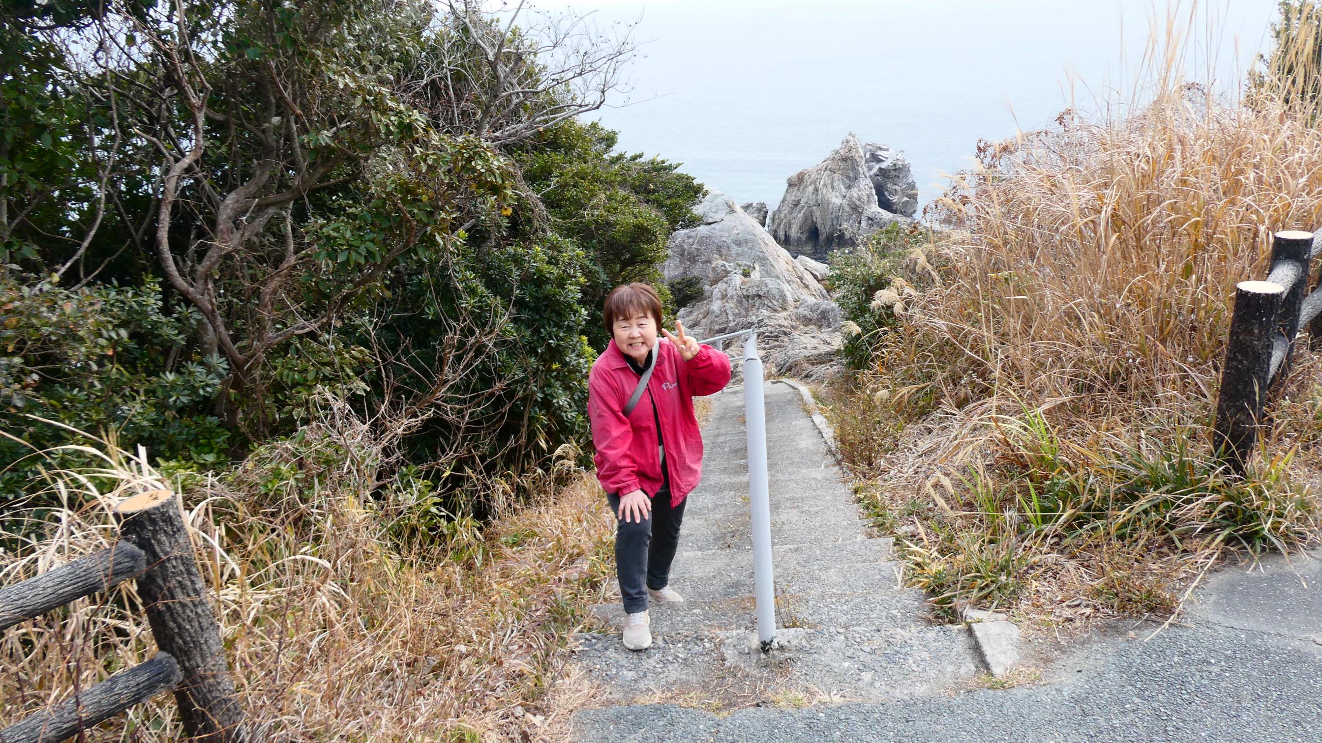 山の上にある、椰子の実記念碑駐車場に車を止めたら、凄い急階段を下りて日出の石門に着く 帰りの階段の上りがとても不安になる