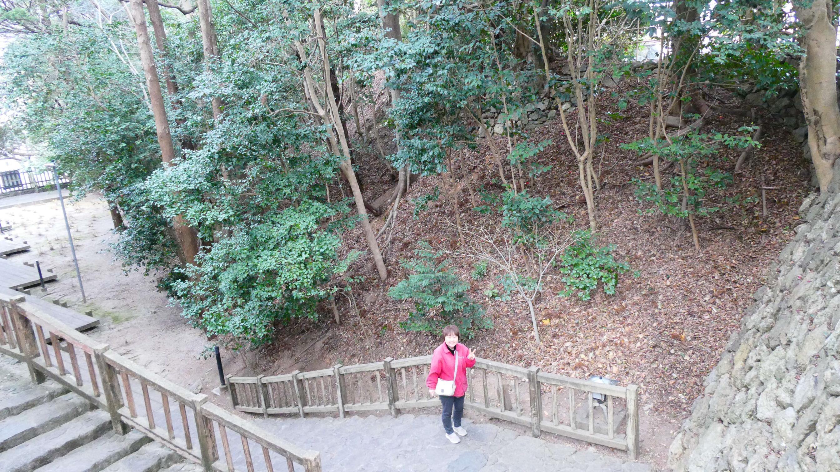 空堀から二の丸へ上がる 見応えある石垣と階段が素晴らしい