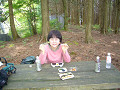 笑い仏まで急坂を登り、休憩で大福を食べる