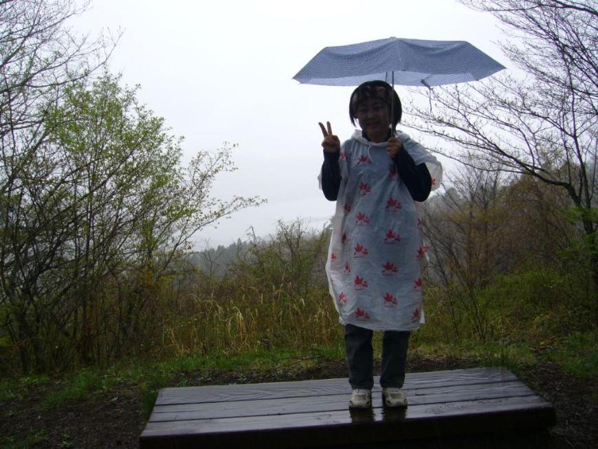 11:20 平尾山に着く カッパ着てても服はびっしょり、屋根付きの休憩所が助かった