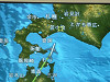 セントレアから新千歳までは約1時間半の飛行 ディスプレイにリアルタイムで現在の飛行地点が表示されのが嬉しい