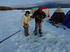 阿寒湖上のテントの中はわかさぎ釣り この人正座して釣っていた