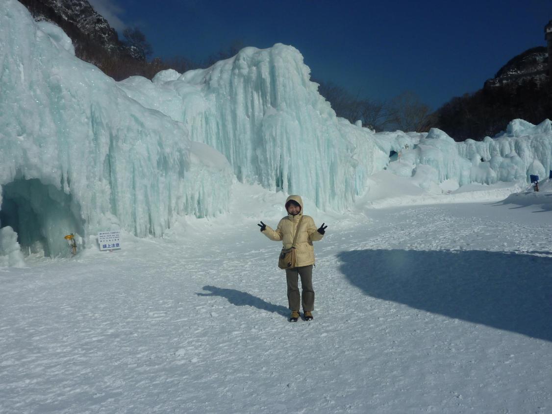 旅行最後のハイライトの層雲峡氷爆まつりを見物