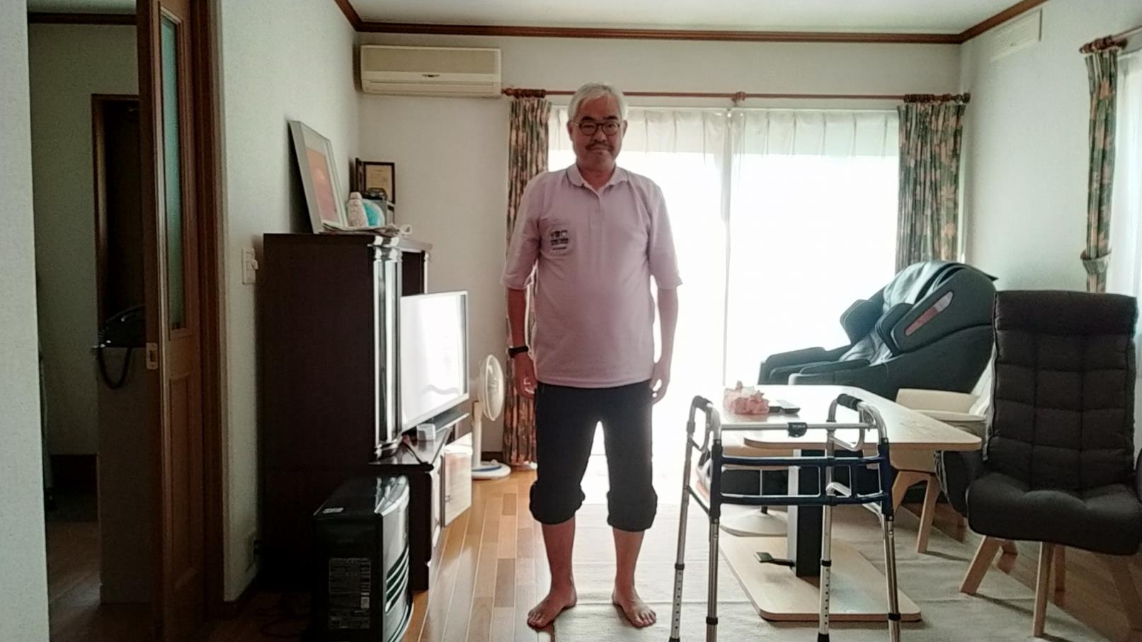 2022.4月後半 装具付けずに立つ・歩行器で歩く、足は曲がっていない?