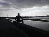 何処までも真っ直ぐな道の両サイドに松林と海岸 中々素晴らしい